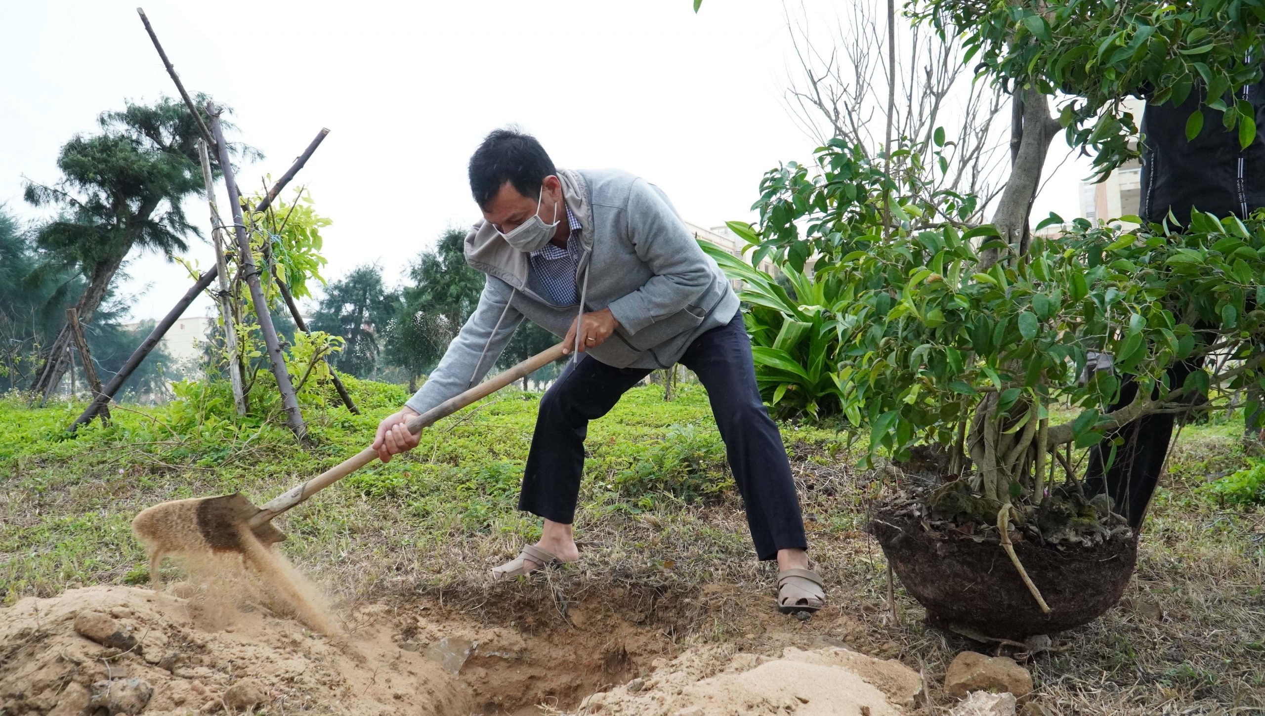 Cán bộ viên chức Nhà trường hưởng ứng và trồng cây xanh tạo cảnh quan đẹp cho trường
