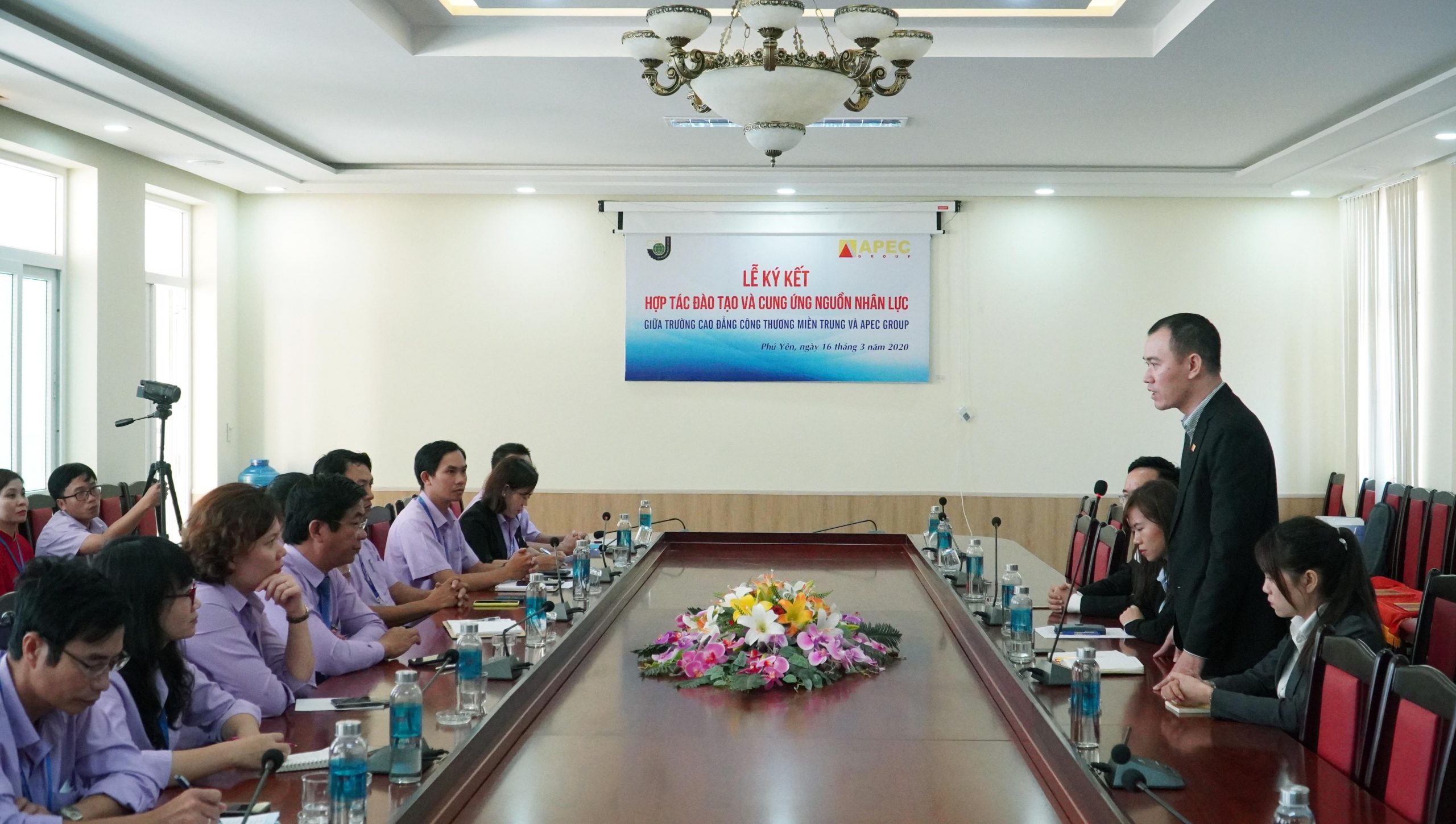 Tham dự Lễ ký kết có Ông Vũ Văn Chinh – Giám đốc Apec Phú Yên; TS. Trần Kim Quyên – Hiệu trưởng Trường Cao đẳng Công Thương miền Trung, cùng trưởng các đơn vị, bộ phận của hai bên.