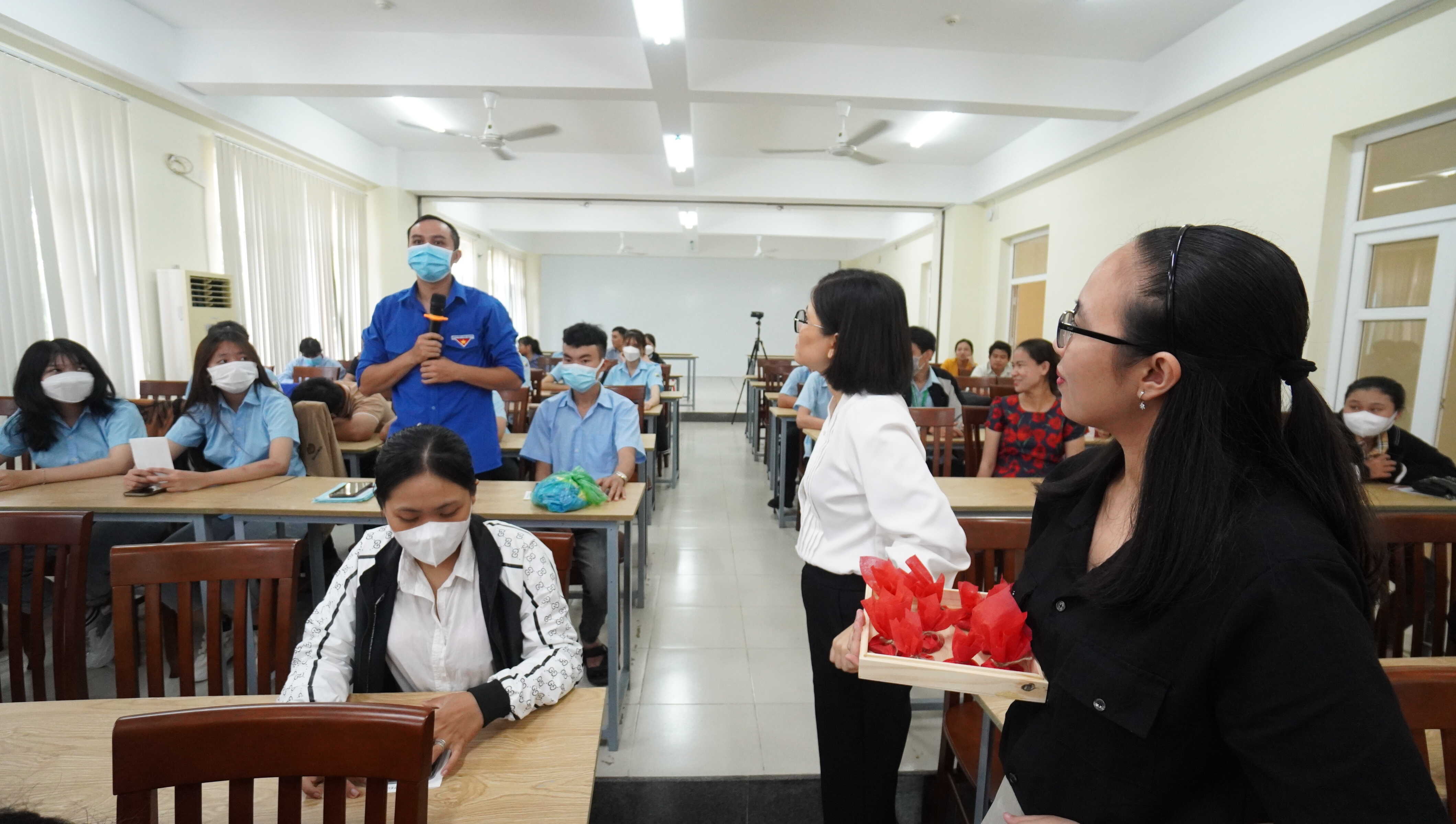 Bà Bùi Thị Kim Hoàng trưởng Phòng nhân sự, chia sẻ những kinh nghiệm khi tham gia vào thị trường lao động đặc biệt là làm trong ngành dịch vụ với HSSV