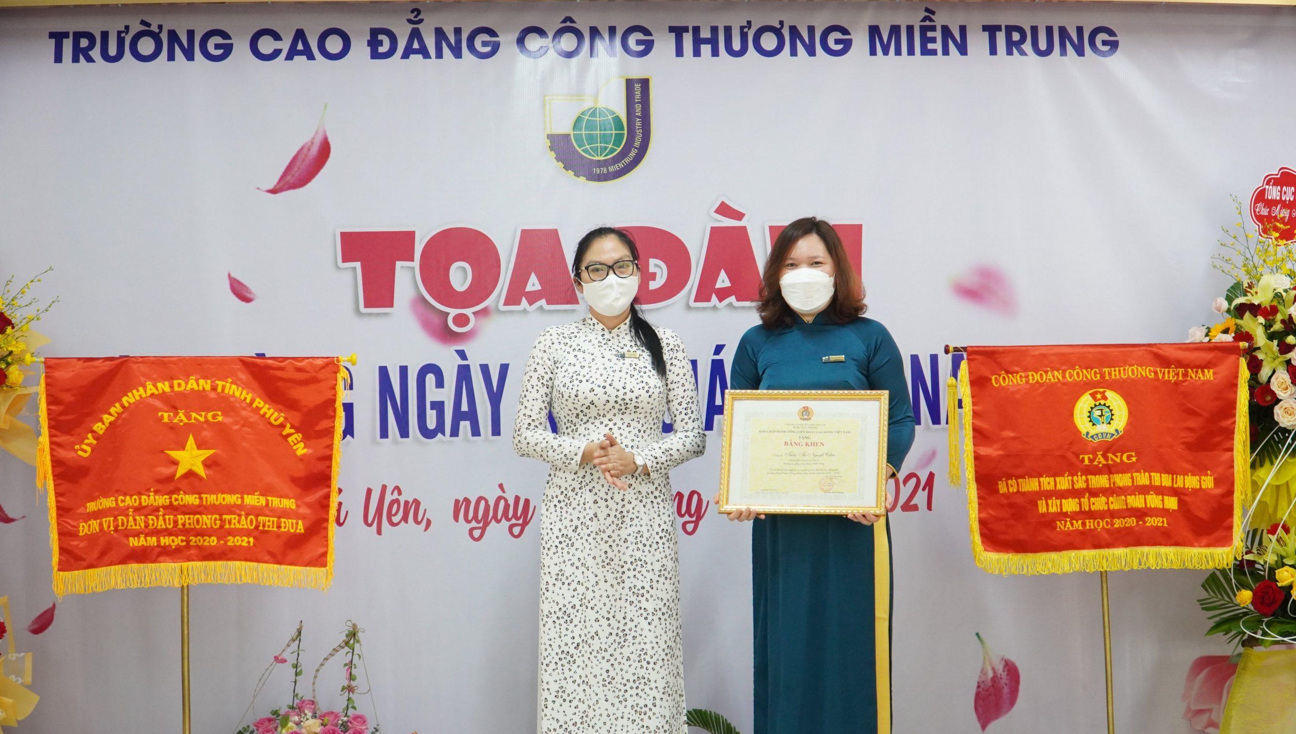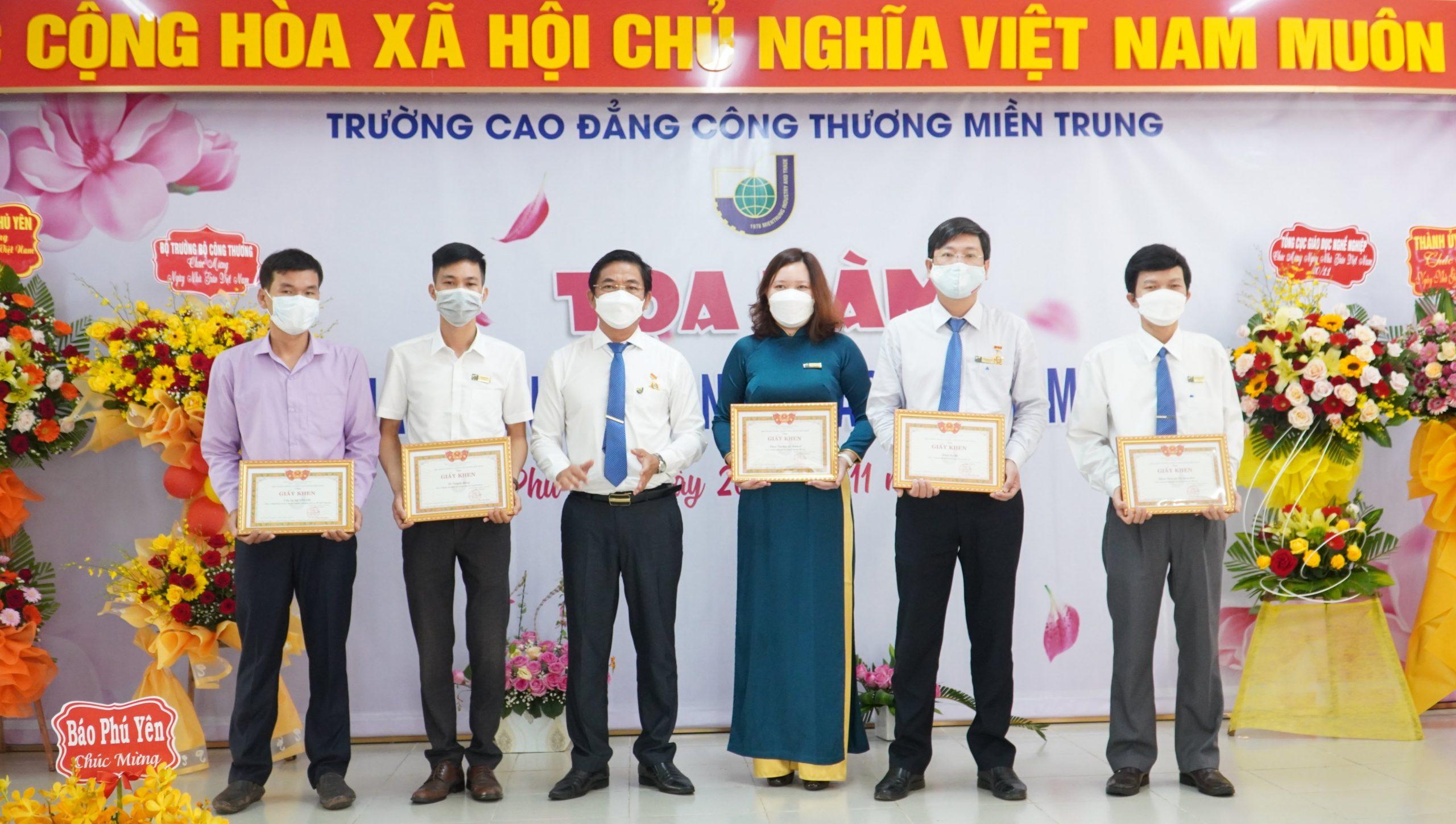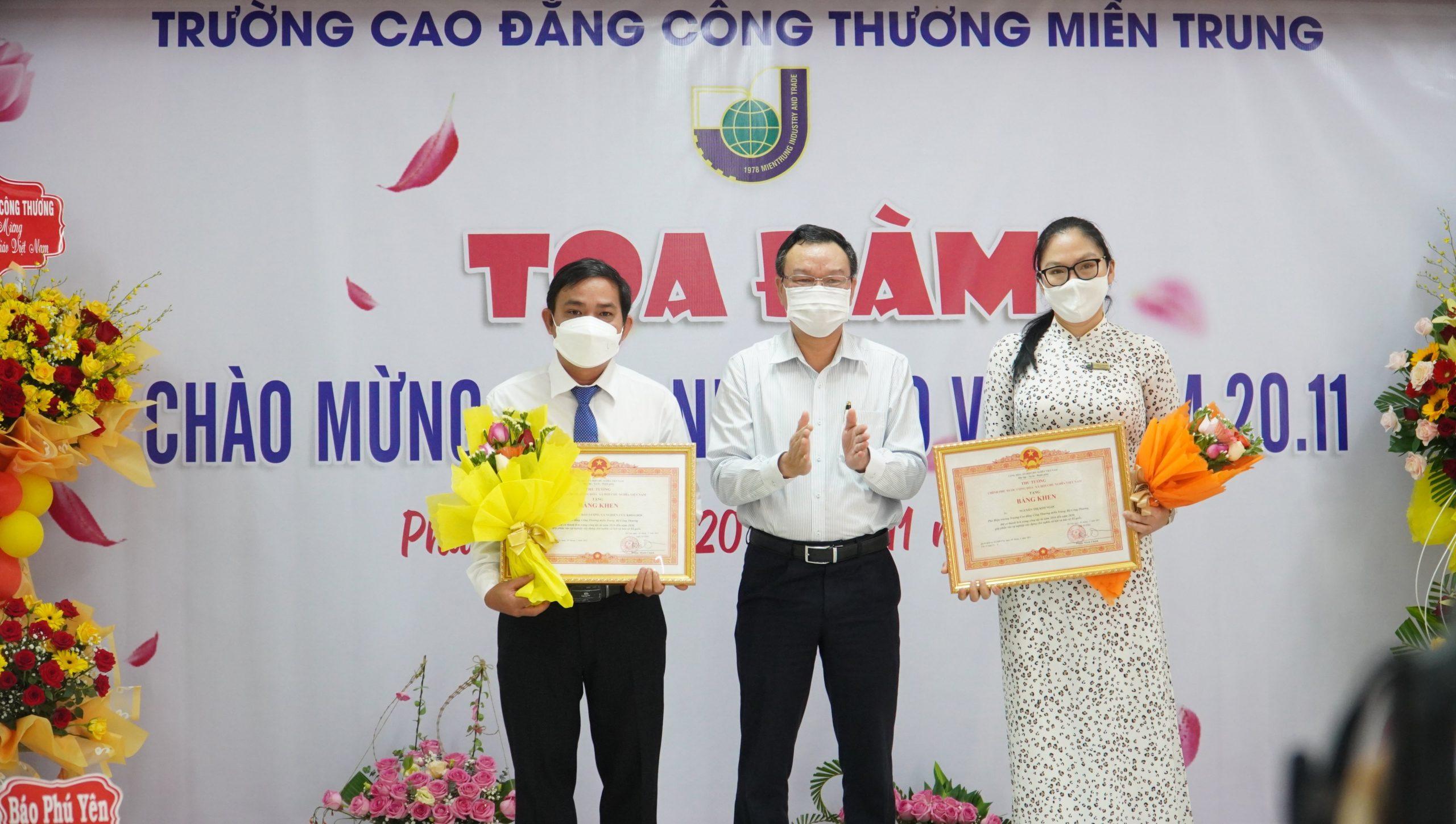 Nhân dịp này, Trường Cao đẳng Công Thương miền Trung đã vinh dự nhận bằng khen của Thủ tướng Chính phủ dành cho 1 tập thể- phòng Quản lý chất lượng & Nghiên cứu khoa học và 1 cá nhân- TS. Nguyễn Thị Kim Ngọc- phó Hiệu trưởng đã có thành tích xuất sắc trong công tác giáo dục từ năm 2016 đến 2020 góp phần vào sự nghiệp xây dựng chủ nghĩa xã hội và bảo vệ Tổ quốc. Tập thể trường Cao đẳng Công Thương miền Trung vinh dự là 1 trong 4 đơn vị trực thuộc Bộ Công Thương đón nhận cờ thi đua xuất sắc từ Bộ Công Thương Việt Nam. Đồng thời, hai cá nhân là TS. Trần Kim Quyên- Hiệu trưởng nhà trường và Ths. Bùi Mạnh Tuấn- trưởng Khoa Cơ khí nhận huy hiệu và bằng khen Chiến sỹ thi đua Bộ Công Thương. Công Đoàn nhà trường cũng đã vinh dự được Công Đoàn Công Thương tặng cờ thi đua xuất sắc và khen thưởng 4 cá nhân có thành tích xuất sắc và TS. Trần Thị Nguyệt Cầm- trưởng Khoa Tin Học – Kinh tế nhận bằng khen từ tổng Liên đoàn Lao động Việt Nam.