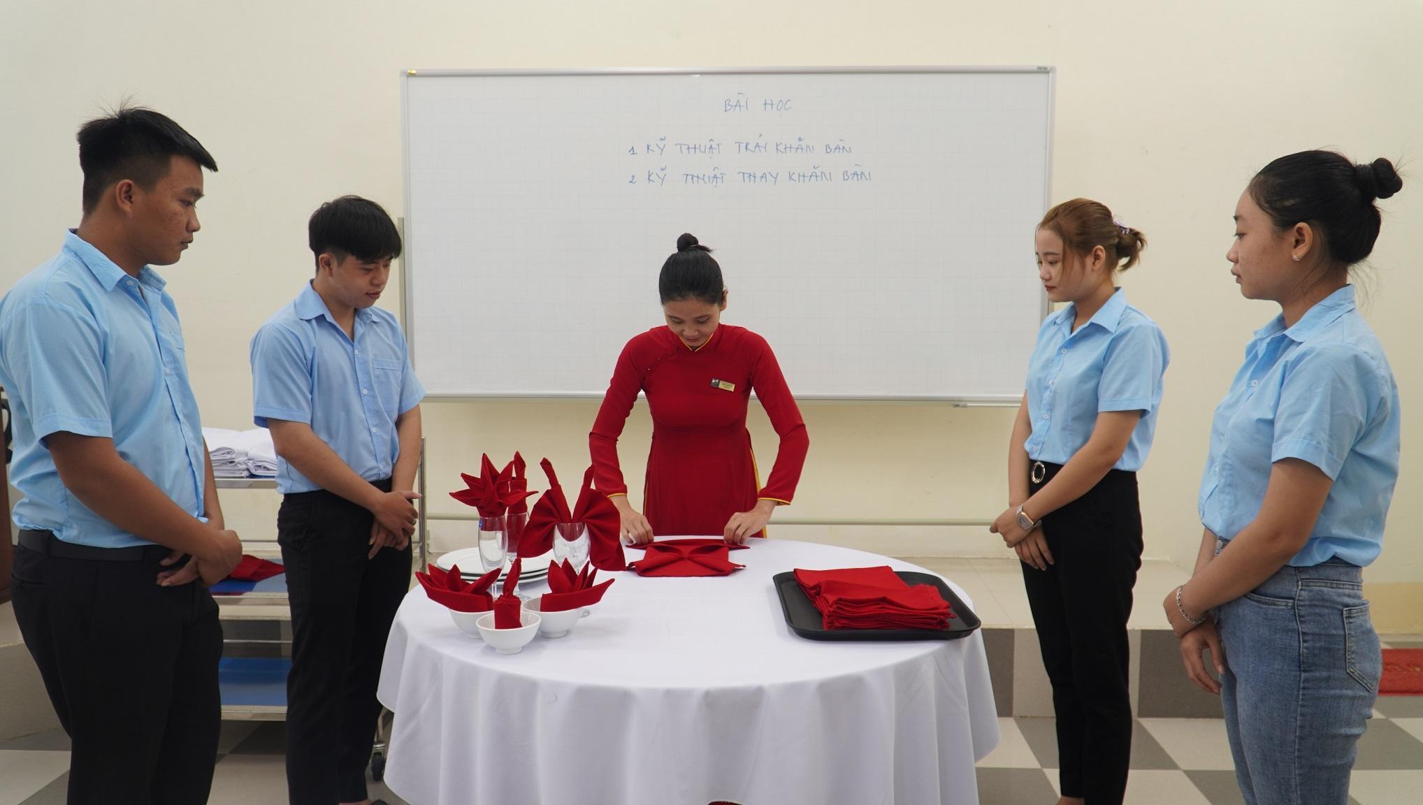 Một buổi thực hành nghề Nhà hàng và dịch vụ ăn uống của Học sinh học chương trình 9+
