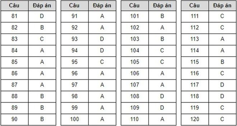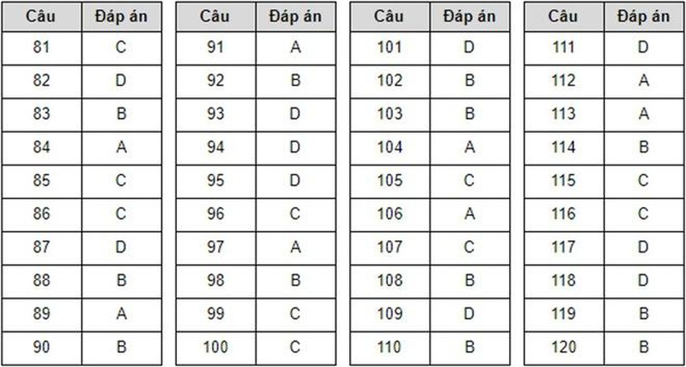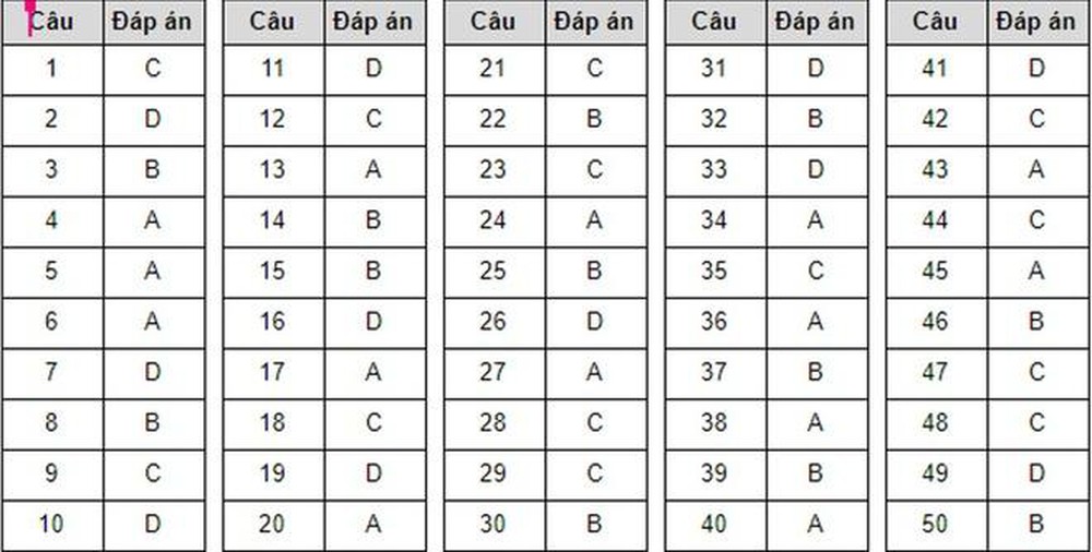 Giáo viên Trung tâm Khai Trí – Trường Cao đẳng Công Thương miền Trung gợi ý đáp án các môn như sau: