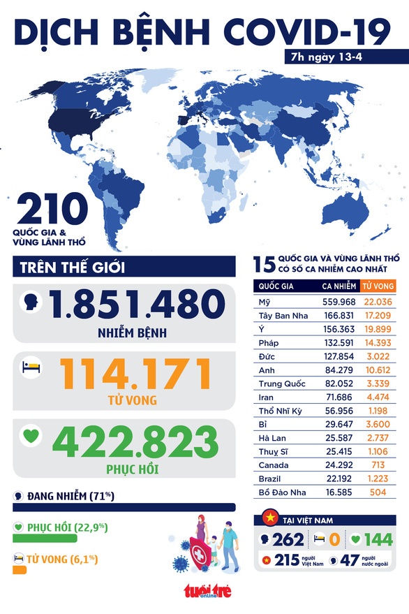 Tính đến 6h sáng ngày 13-4, giờ Việt Nam, theo [...]