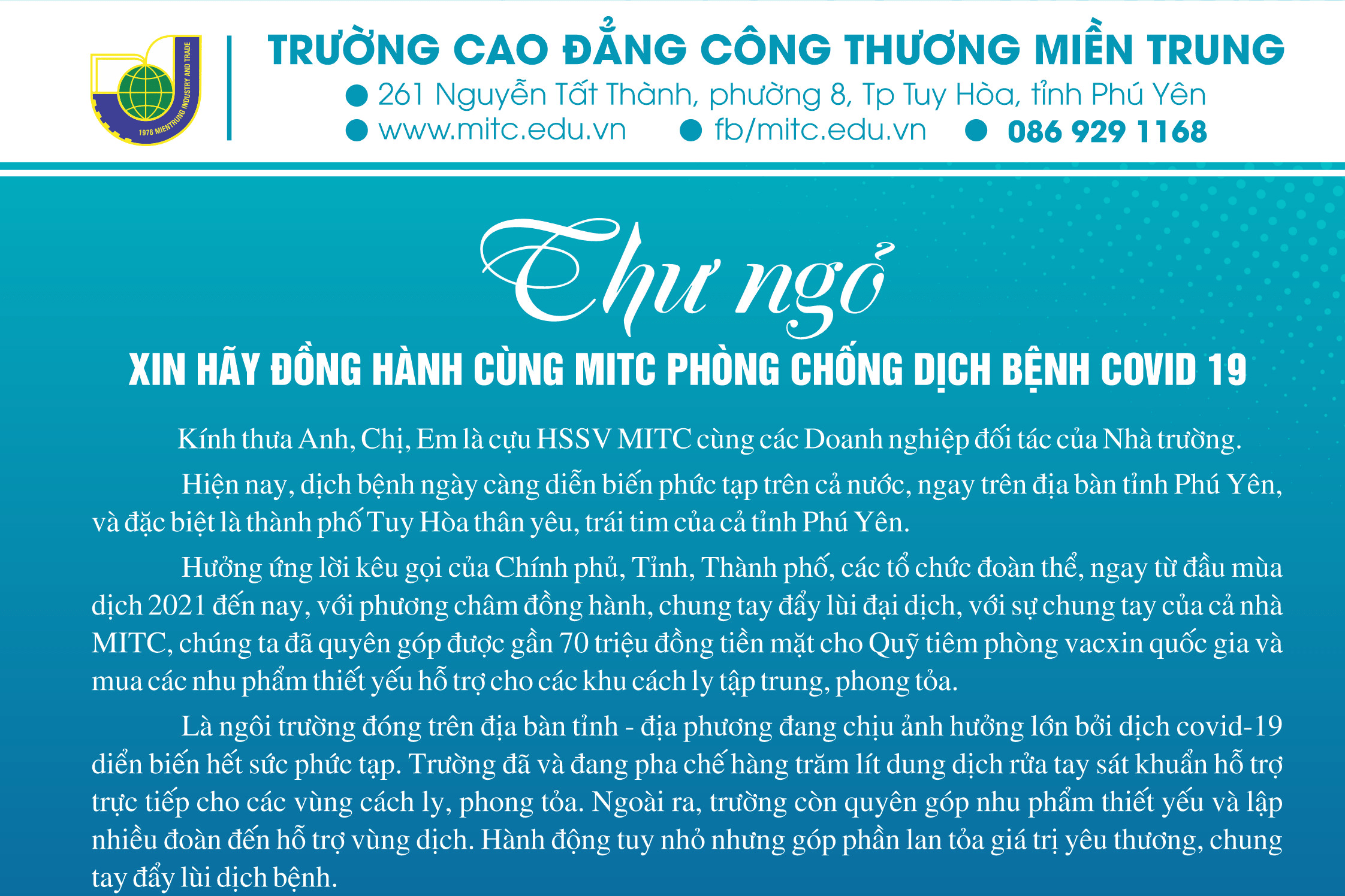 Trường Cao Đẳng Công Thương miền Trung tiếp sức mùa thi 2021