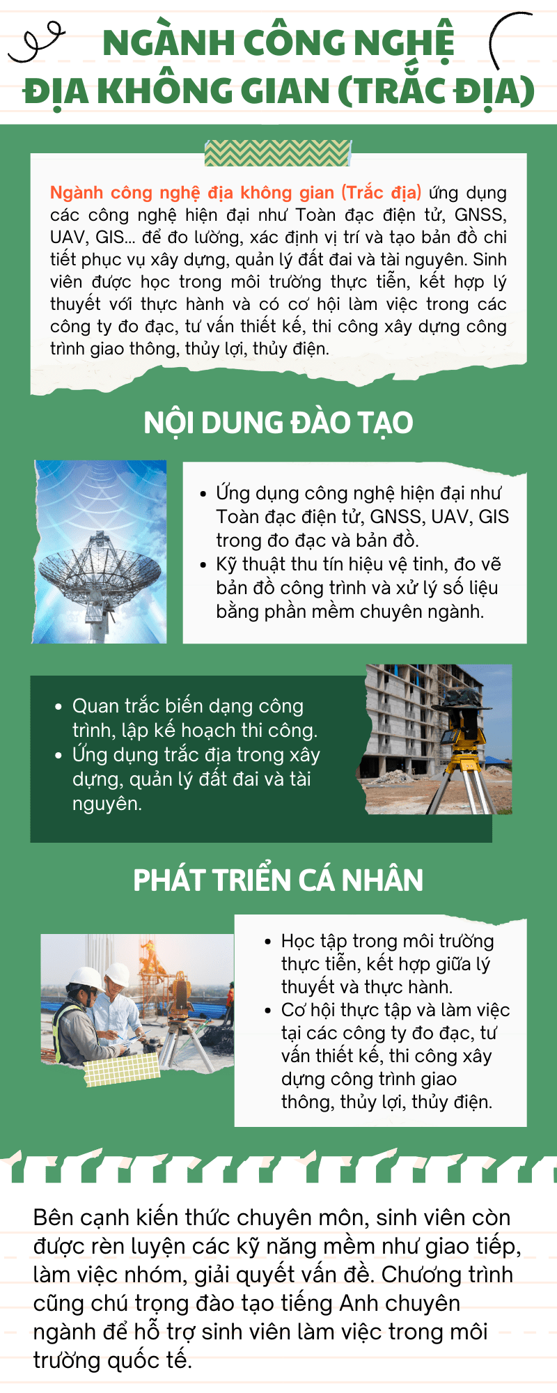 – Kỹ thuật viên GNSS (Hệ thống định vị toàn cầu): Chuyên về việc cài đặt, vận hành và bảo trì các thiết bị thu tín hiệu vệ tinh.