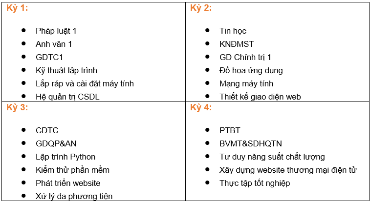 – Lắp ráp, kết nối, sử dụng được thống máy tính và các thiết bị ngoại vi, thiết bị an ninh;