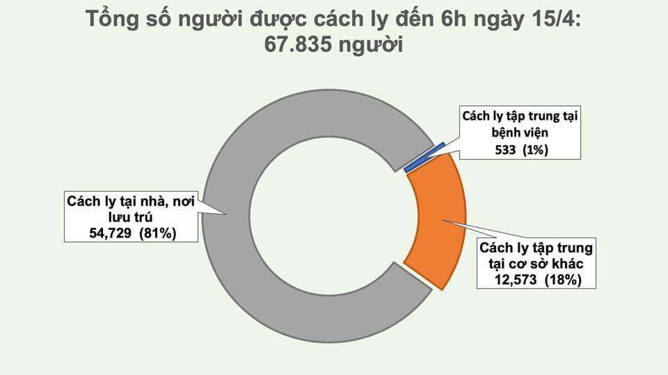Đến 6h ngày 15/4, Việt Nam ghi nhận 267 trường hợp nhiễm Covid-19 trong đó 160 người từ nước ngoài chiếm 59,9%; 107 người lây nhiễm trong cộng đồng chiếm 40,1%.