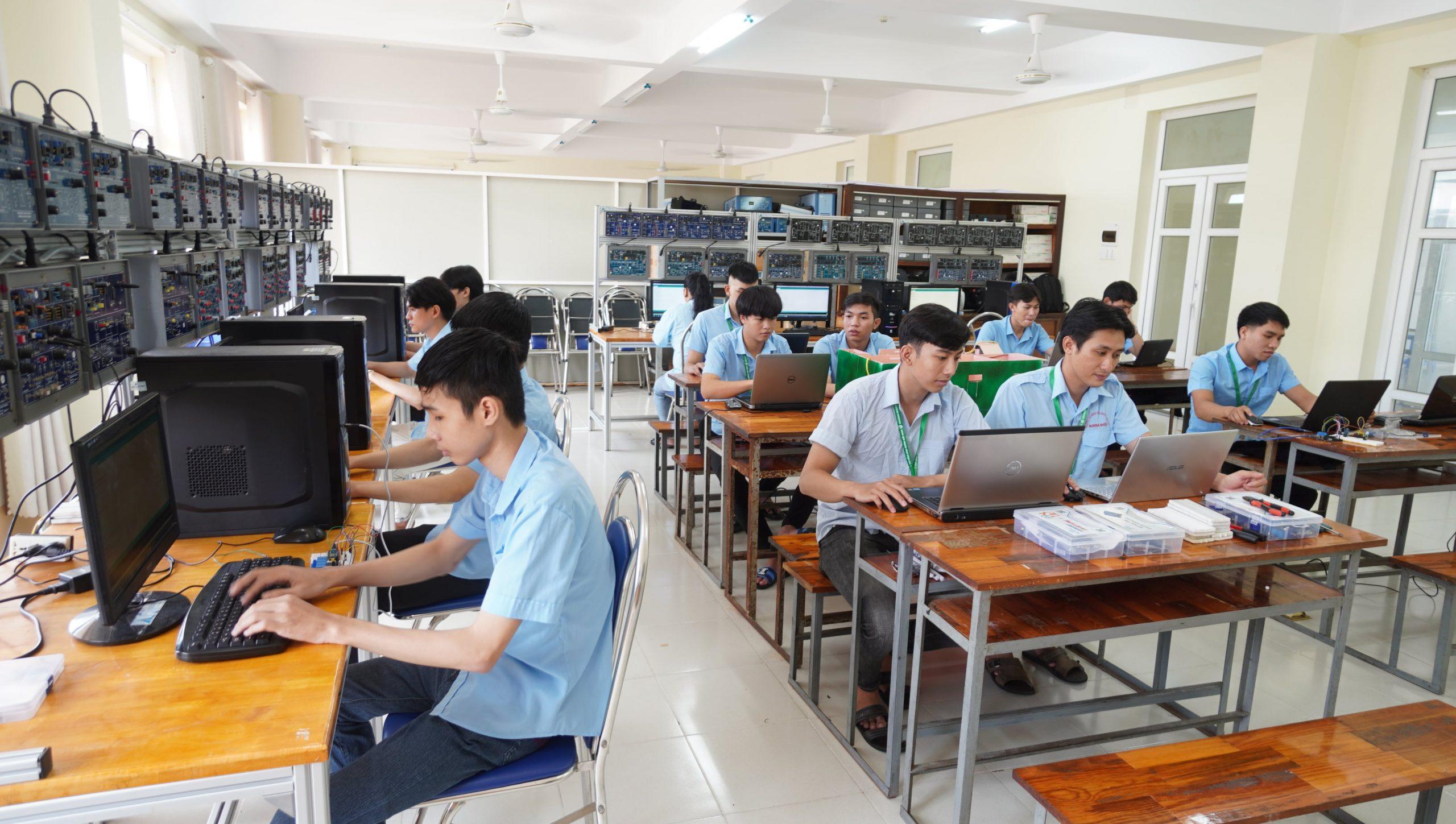 – 07 phòng vi tính, 03 phòng máy học Ngoại ngữ, hệ thống phòng thí nghiệm, xưởng thực hành được đầu tư trang thiết bị hiện đại.
