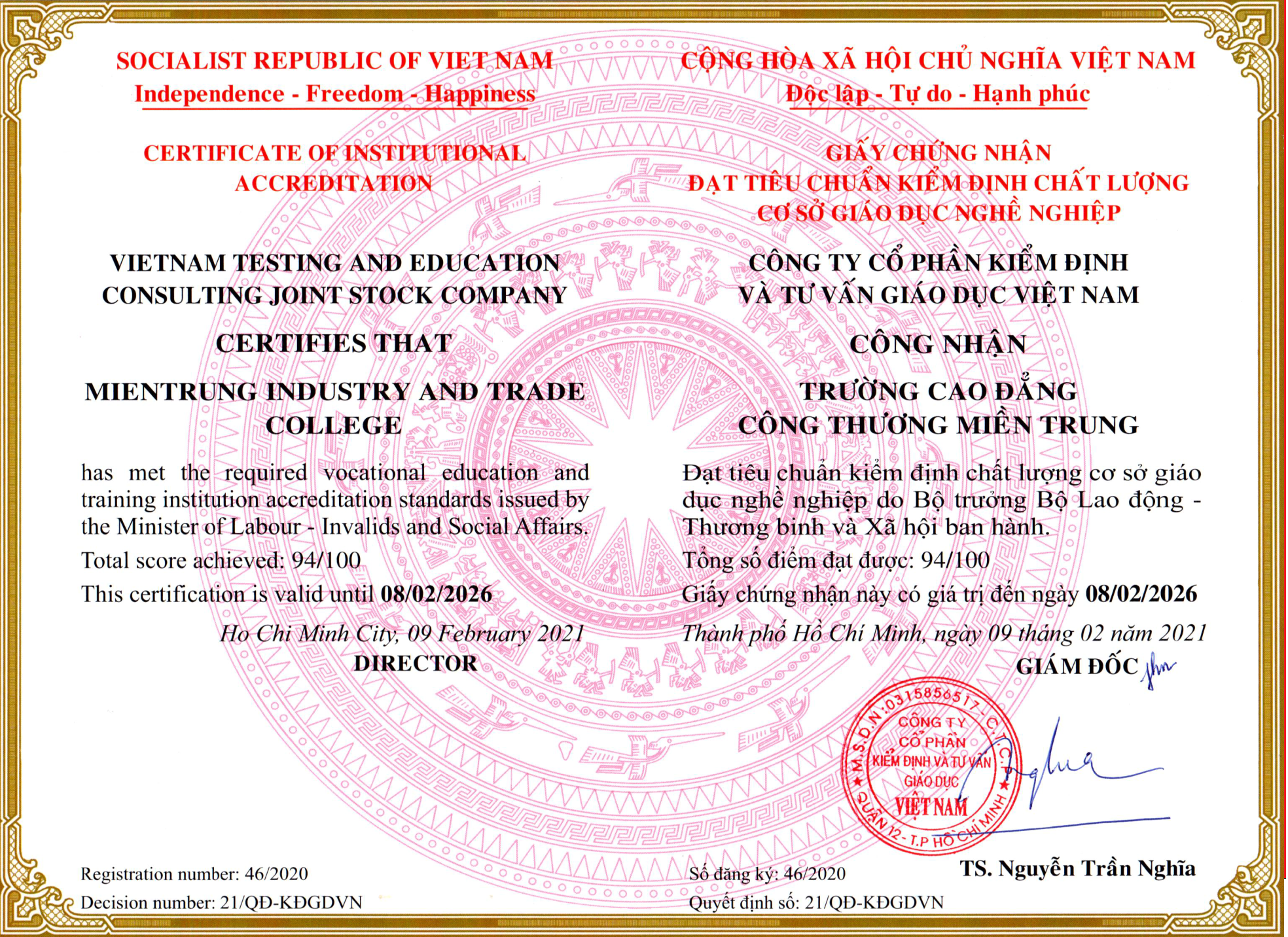 Thông điệp của Hiệu Trưởng Trường Cao đẳng Công Thương Miền Trung MITC2025-12-24T14:27:32+07:0009/01/2023|Giới thiệu| Trường Cao đẳng Công Thương miền Trung là sự lựa chọn đúng đắn của bạn! Đăng ký Tuyển sinh Trực tuyến Họ & Tên * Họ & Tên Họ Họ Tên Tên Giới tính * NamNữ Ngày tháng năm sinh * Địa chỉ Số nhà / Thôn * Phường / Xã * Thị xã / Thành phố / Huyện * Tỉnh * Bậc đăng ký * Cao đẳngCao đẳng (học trực tuyến)Trung cấpTrung cấp (học trực tuyến) Ngành đào tạo bậc Cao đẳng * Gia công cơ khí chính xácĐiện công nghiệpKỹ thuật hàn công nghệ caoKỹ thuật máy lạnh và điều hòa không khíĐiện tử công nghiệpCông nghệ thông tinHướng dẫn du lịchCông nghệ kỹ thuật cơ điện tửCông nghệ kỹ thuật hóa họcQuản trị nhà hàng và dịch vụ ăn uốngCông nghệ kỹ thuật cơ khíKinh doanh thương mạiQuản trị khách sạnThiết kế đồ họaLắp đặt, bảo trị hệ thống năng lượng tái tạoKỹ thuật chế biến món ănKế toán thương mại và dịch vụCông nghệ Ô tôCông nghệ kỹ thuật trắc địaCông nghệ kỹ thuật điều khiển và tự động hóa Bậc Cao đẳng trực tuyến * Công nghệ thông tin (học Trực tuyến)Quản trị kinh doanh (học Trực tuyến)Kế toán (học Trực tuyến) Ngành đào tạo bậc Trung cấp * Gia công cơ khí chính xácĐiện công nghiệpKỹ thuật hàn công nghệ caoKỹ thuật máy lạnh và điều hoà không khíCông nghệ thông tin (Ứng dụng phần mềm)Điện tử công nghiệpHướng dẫn du lịchKế toán (Kế toán doanh nghiệp, Kế toán Nhà hàng – Khách sạn)Kinh doanh thương mạiCông nghệ kỹ thuật cơ khíCông nghệ ôtôSinh học ứng dụng công nghệ caoNghiệp vụ nhà hàng, khách sạnCông nghệ kỹ thuật trắc địaChăm sóc sắc đẹpQuản trị khách sạnKỹ thuật chế biến món ănLắp đặt bảo trì hệ thống năng lượng tái tạoHóa phân tích Bậc Trung cấp học Trực tuyến * Công nghệ thông tin (học Trực tuyến)Kế toán (học Trực tuyến) Trường THCS / THPT vừa tốt nghiệp * Số Điện thoại * Email hoặc Link Facebook của Bạn? XÁC NHẬN If you are human, leave this field blank. Hãy chọn MXH & Chia sẻ bài viết! FacebookXLinkedInWhatsAppTelegramPinterestEmail Related Posts Hội đồng Trường Cao đẳng Công Thương miền Trung Gallery Hội đồng Trường Cao đẳng Công Thương miền Trung 08/06/2025 | 0 Comments Báo cáo công khai năm học 2024-2025 Báo cáo công khai năm học 2024-2025 17/08/2024 | 0 Comments Cao đẳng Công Thương miền Trung – Những thành tựu trên hành trình 47 năm xây dựng và phát triển Gallery Cao đẳng Công Thương miền Trung – Những thành tựu trên hành trình 47 năm xây dựng và phát triển 03/07/2018 | 0 Comments Văn bản pháp luật Việt Nam Gallery Văn bản pháp luật Việt Nam 03/07/2018 | 0 Comments