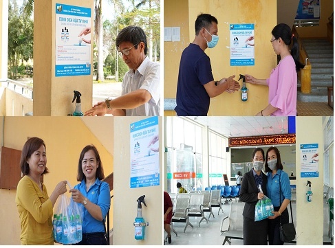 Với những hoạt động ý nghĩa đó, luôn có sự đồng hành của cán bộ Công đoàn trường, tạo sự được sự lan tỏa trong cán bộ viên chức Nhà trường. Nhiều cán bộ viên chức tham gia đóng góp chai lọ, tiền mặt, … Xuyên suốt hai tháng vừa qua, nhiều cán bộ viên chức đã không quản ngại ngày nghỉ cuối tuần thứ bảy, chủ nhật, cùng tham gia súc rửa chai lọ, hỗ trợ pha chế, san chiết, hỗ trợ cấp phát dung dịch,…
