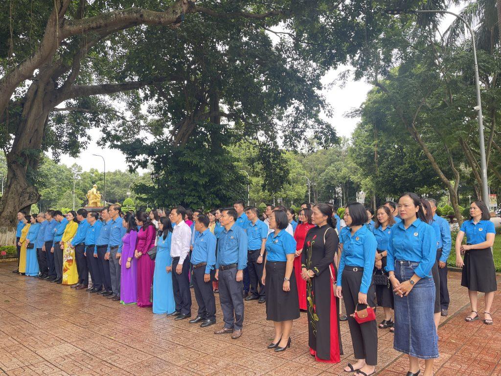 BCH CĐ tham gia cùng với Đoàn đại biểu Công đoàn Công Thương Việt Nam dâng hương tại Đài tưởng niệm trên 100 chiến sĩ Nam tiến tại TP. Buôn Ma Thuột, Đắk Lắk. (Ảnh Trường Minh)