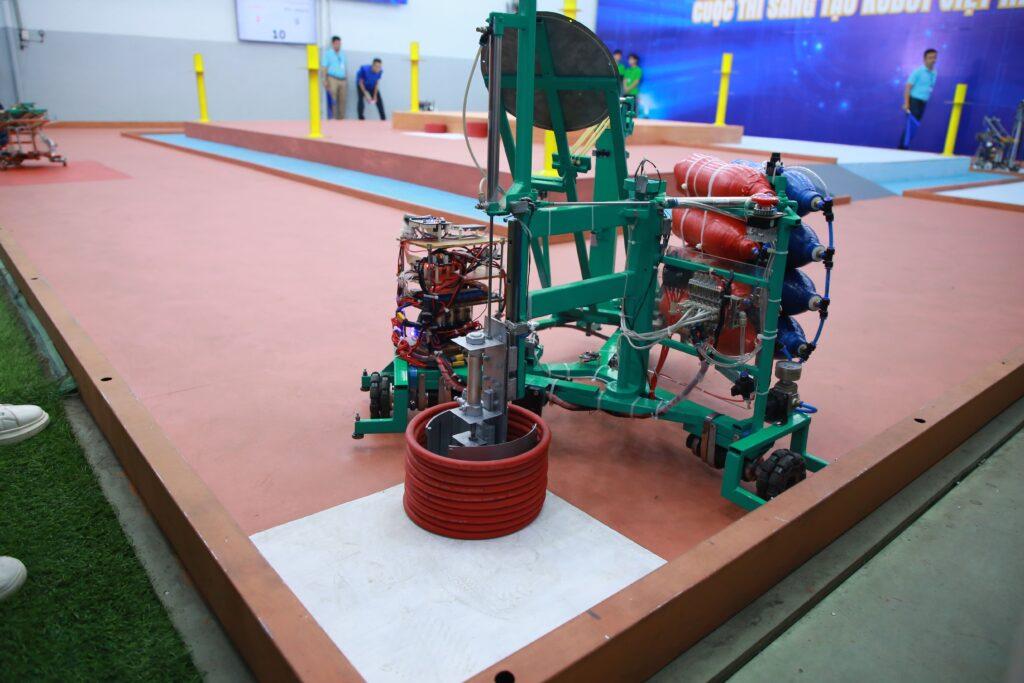 Robot voi của đội TechMITC đang thực hiện lấy vòng và bắn vòng