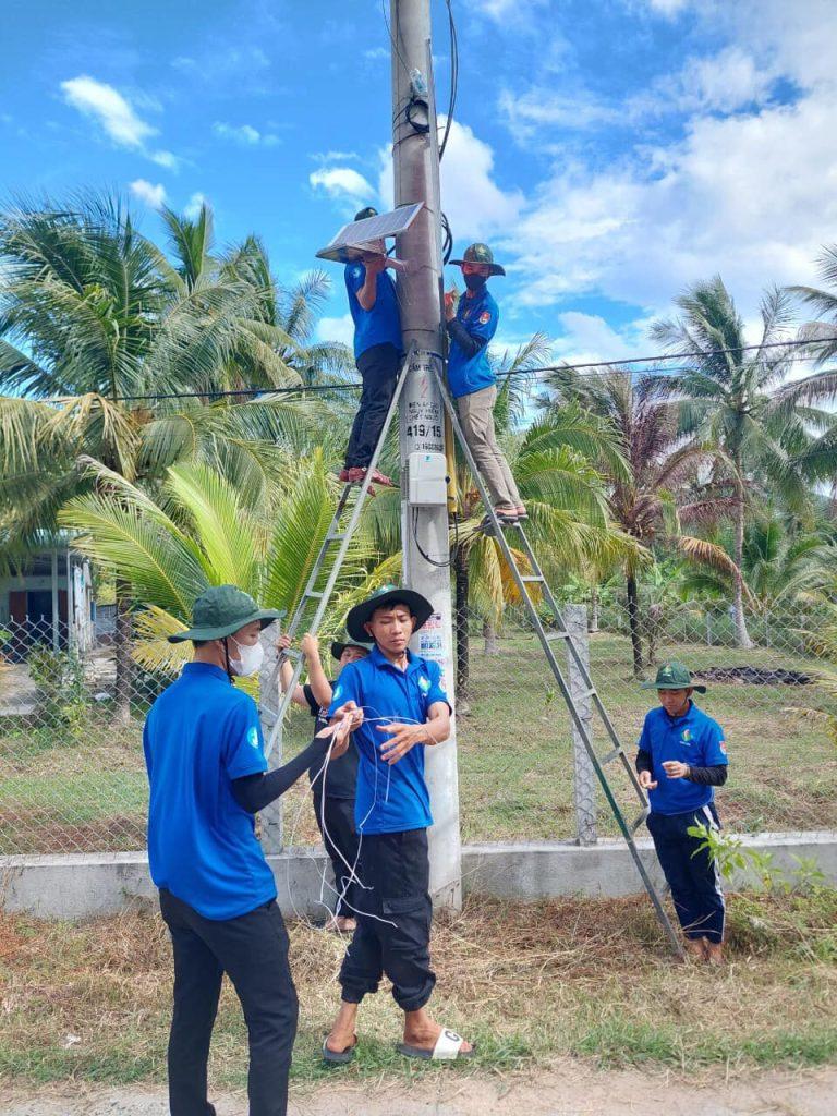 Sinh viên Khoa Điện và Tự động hóa lắp điện đường “Ánh sáng an ninh” ở các đường liên thôn xã Đa Lộc