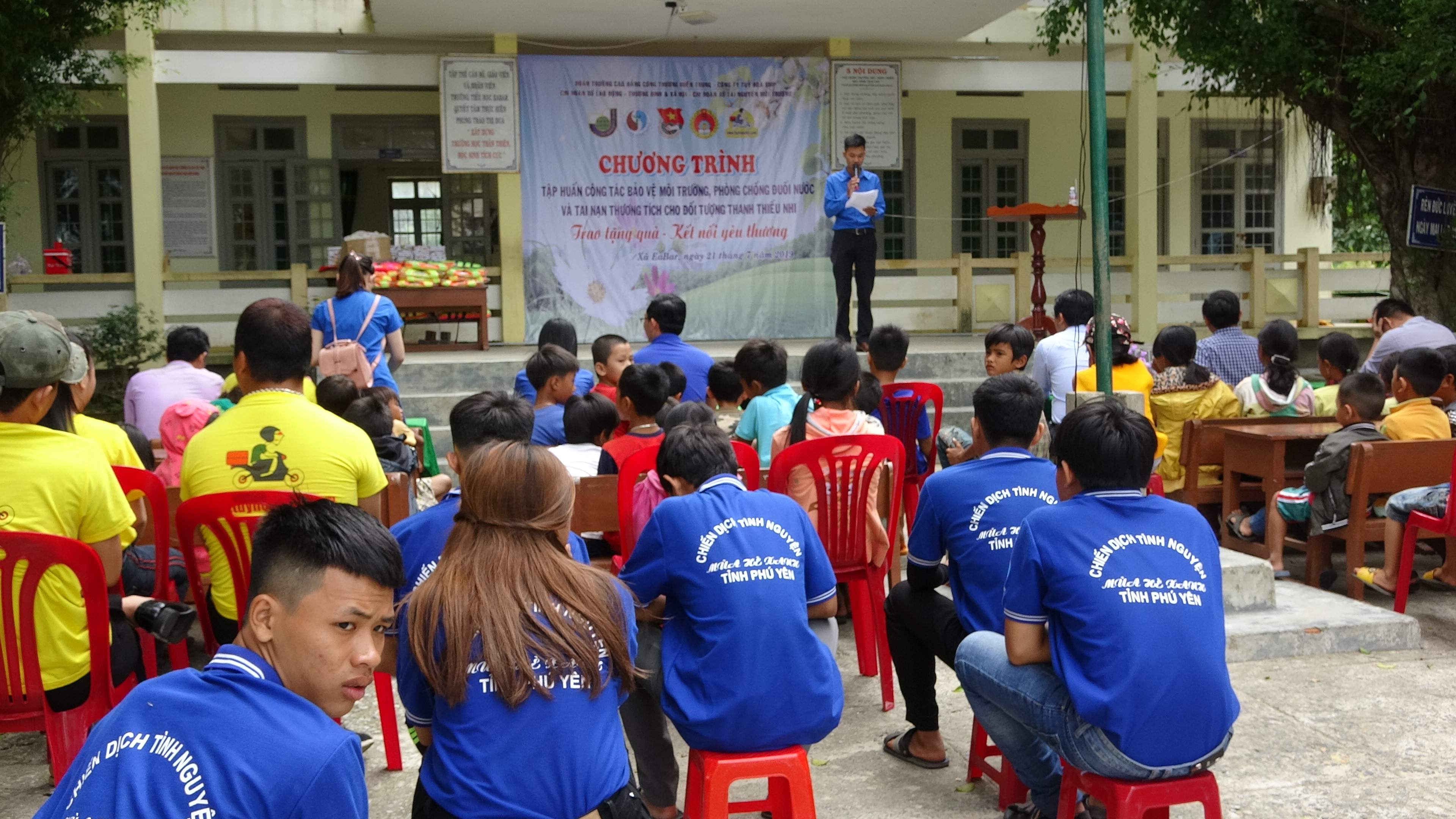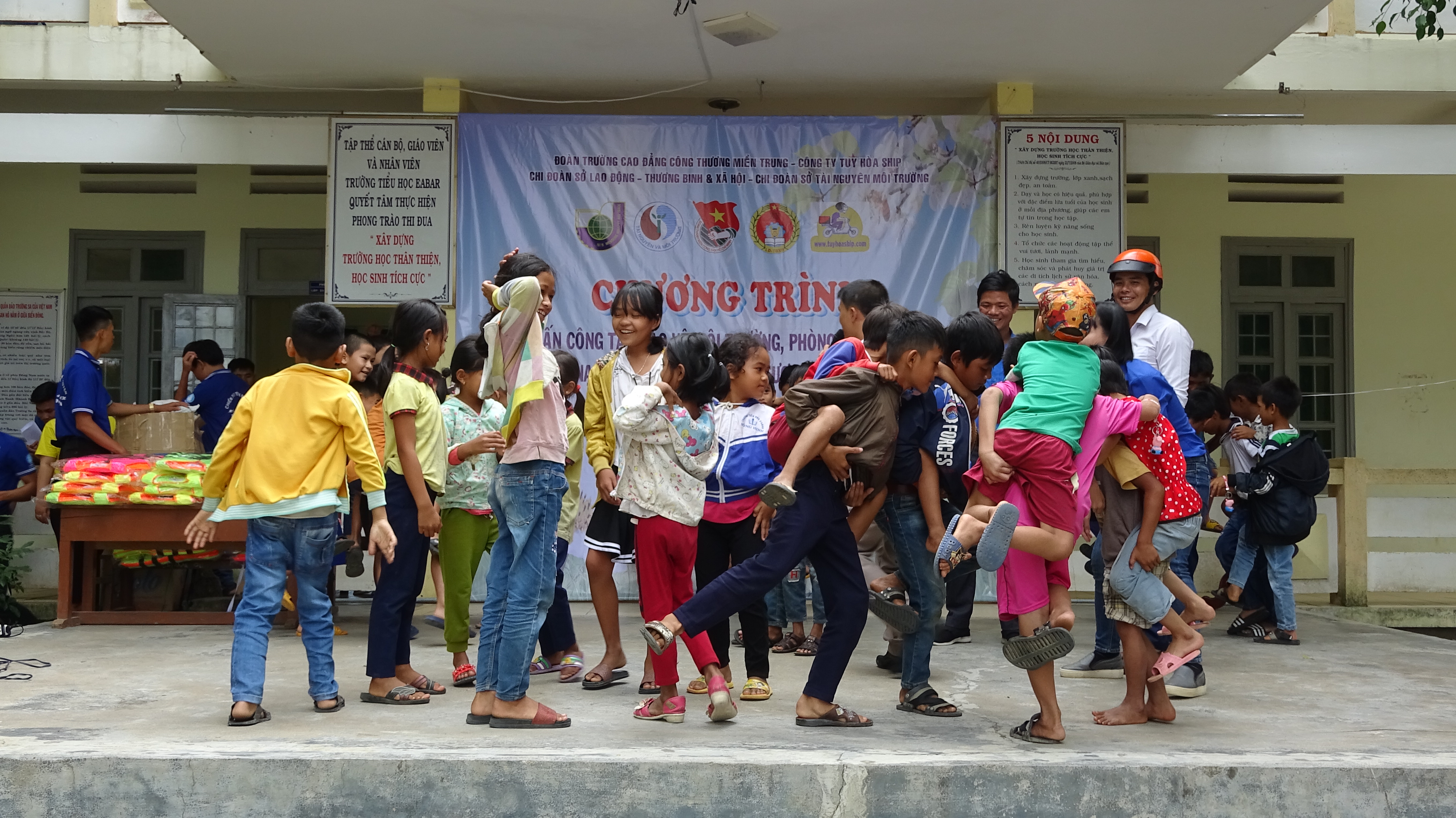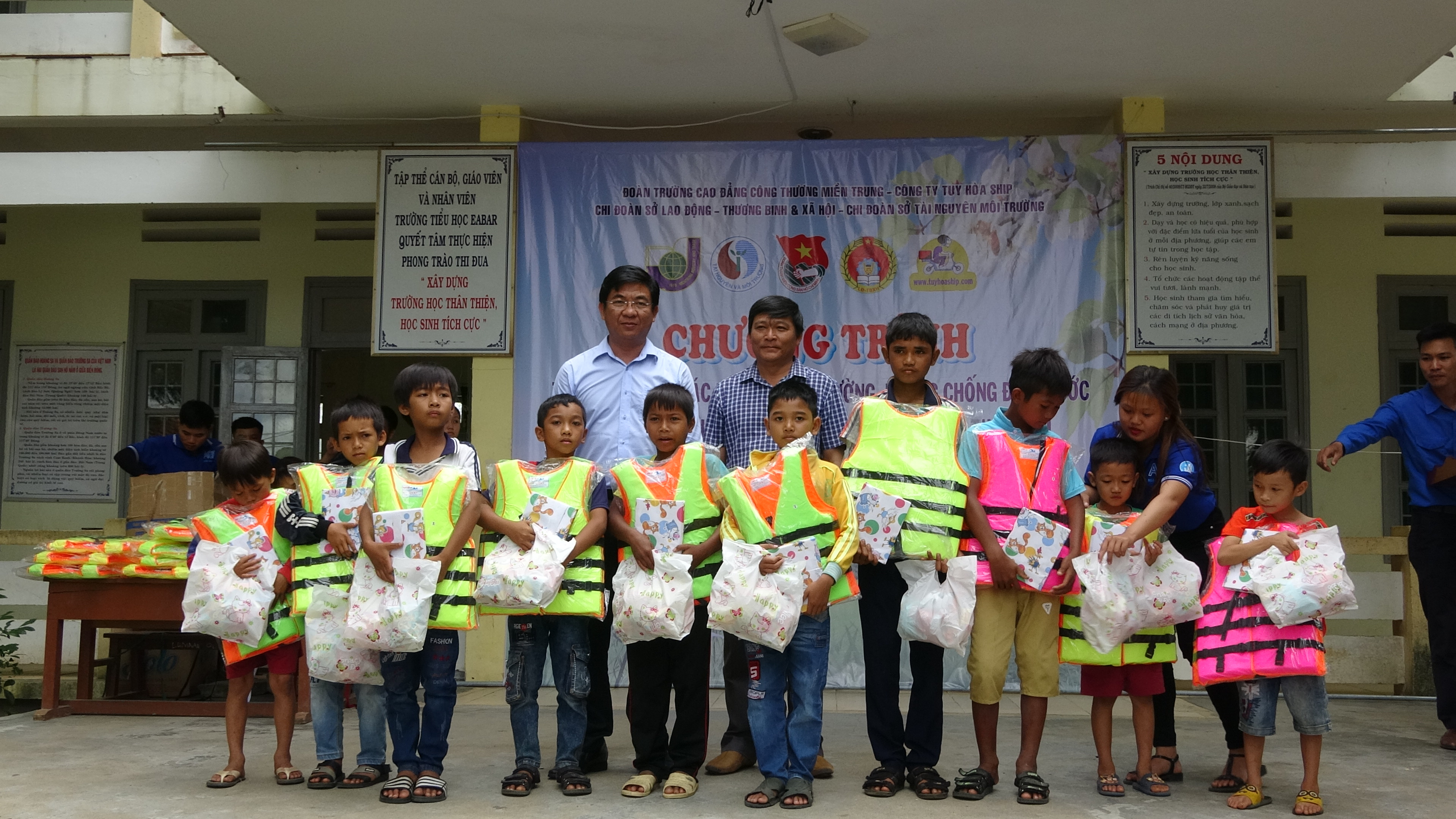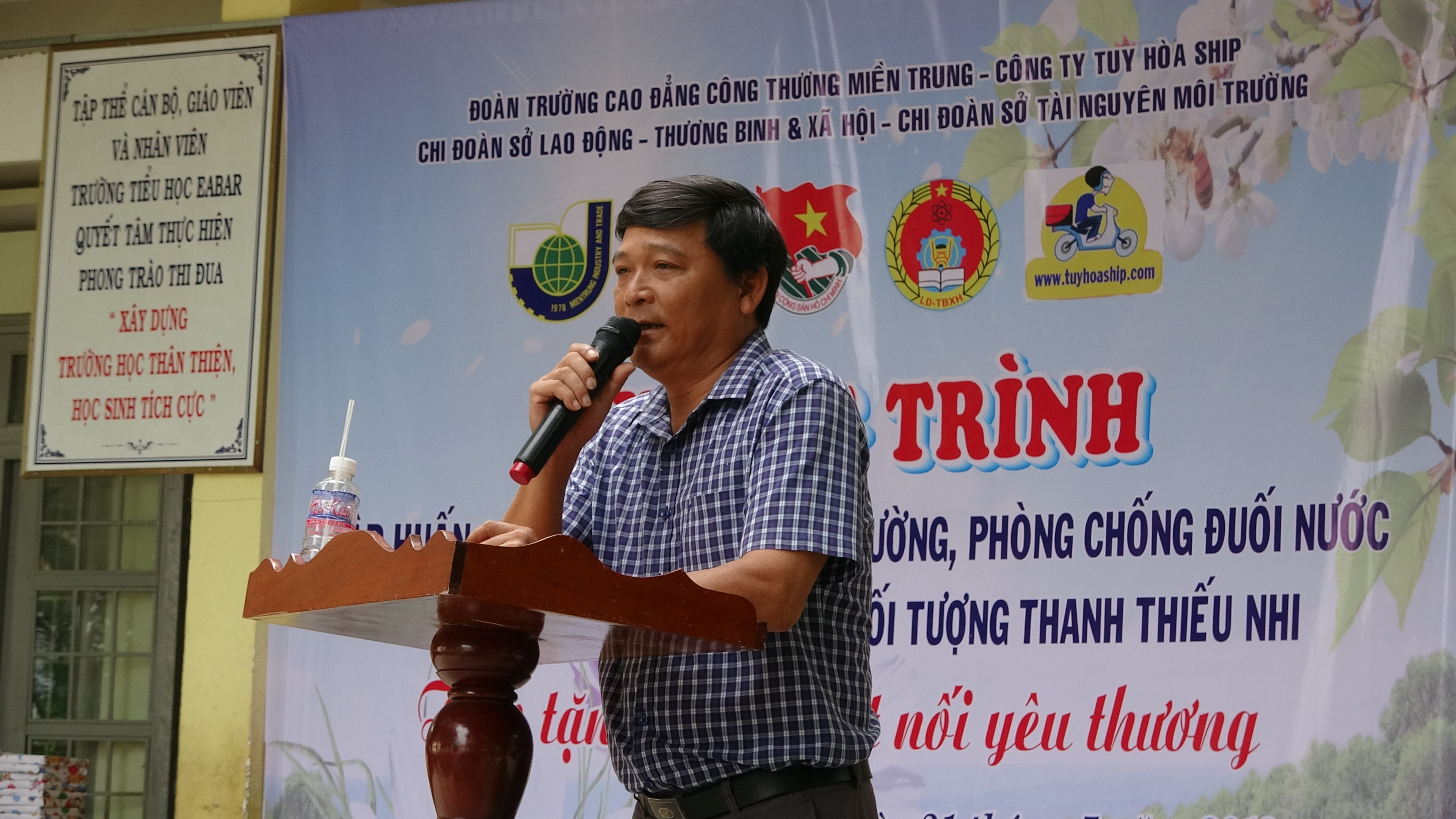 Nhân dịp này Đoàn Thanh niên – Hội Sinh viên trường phối hợp với xã Đoàn Eabar, Chi đoàn Sở Lao động – Thương binh & Xã hội tỉnh, Chi đoàn Sở Tài nguyên Môi trường tỉnh và Công ty Tuy Hòa Ship tổ chức chương trình tập huấn phòng chống đuối nước và dành tặng 100 phần quà cho các em thiếu nhi xã.