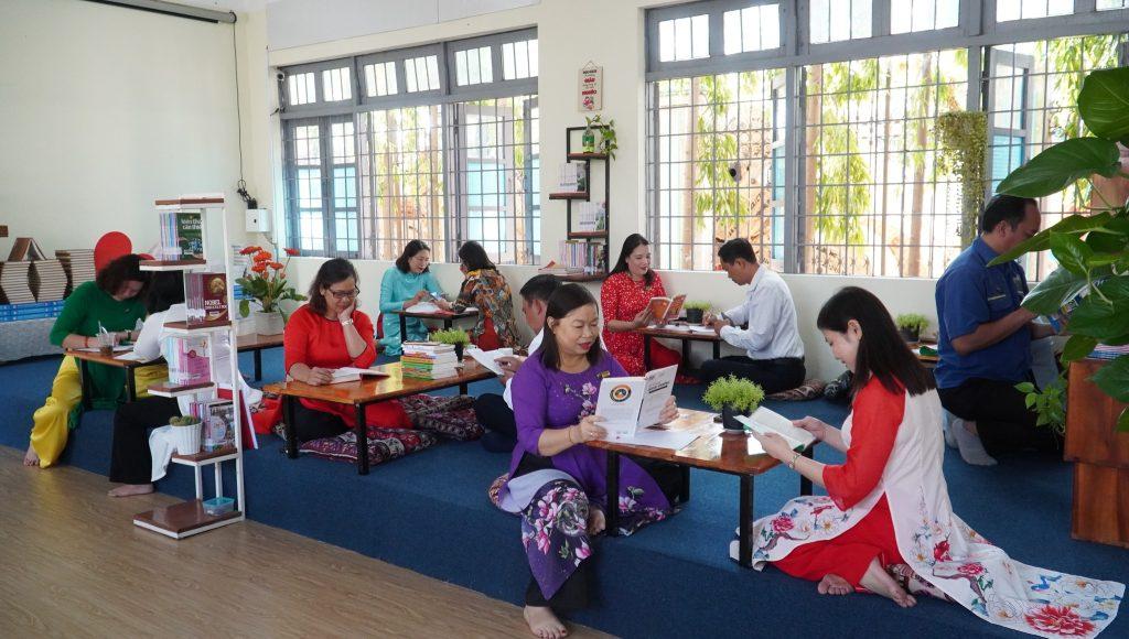 Viên chức, người lao động trường Cao đẳng Công Thương miền Trung đọc sách lúc giải lao sau những giờ làm việc căng thẳng