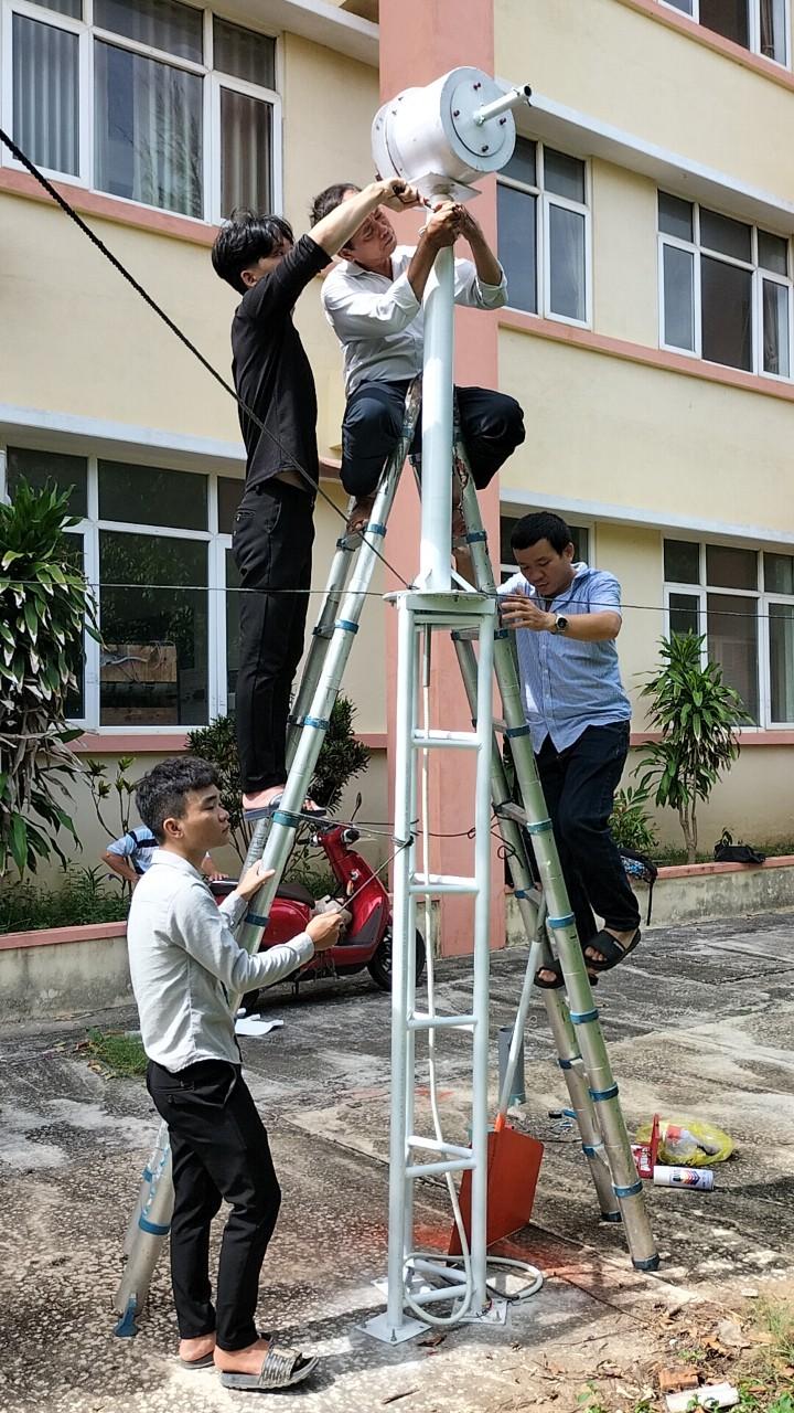 Các sinh viên lớp CĐ ĐLT Khóa 46 – Khoa Điện và Tự động hóa đang thi công mô hình máy phát điện gió 2KW trục ngang
