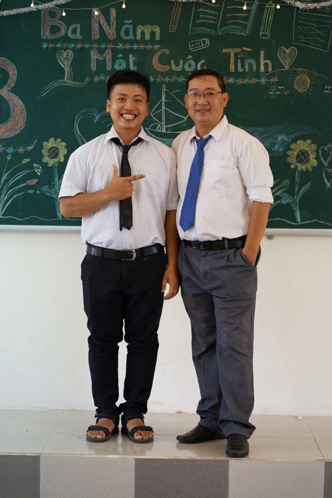 Ngô Tuấn Anh, học sinh lớp 12B3 chụp cùng Giáo viên chủ nhiệm của Lớp tại buổi chụp hình kỷ yếu