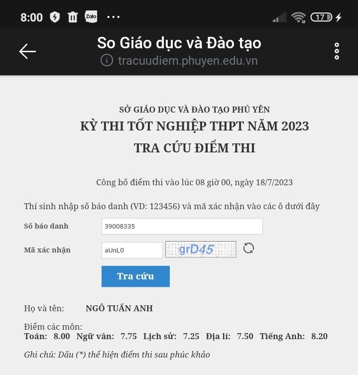 Với tổng điểm đáng nể của Ngô Tuấn Anh, đã xuất sắc đậu vào trường Đại học top trên toàn quốc