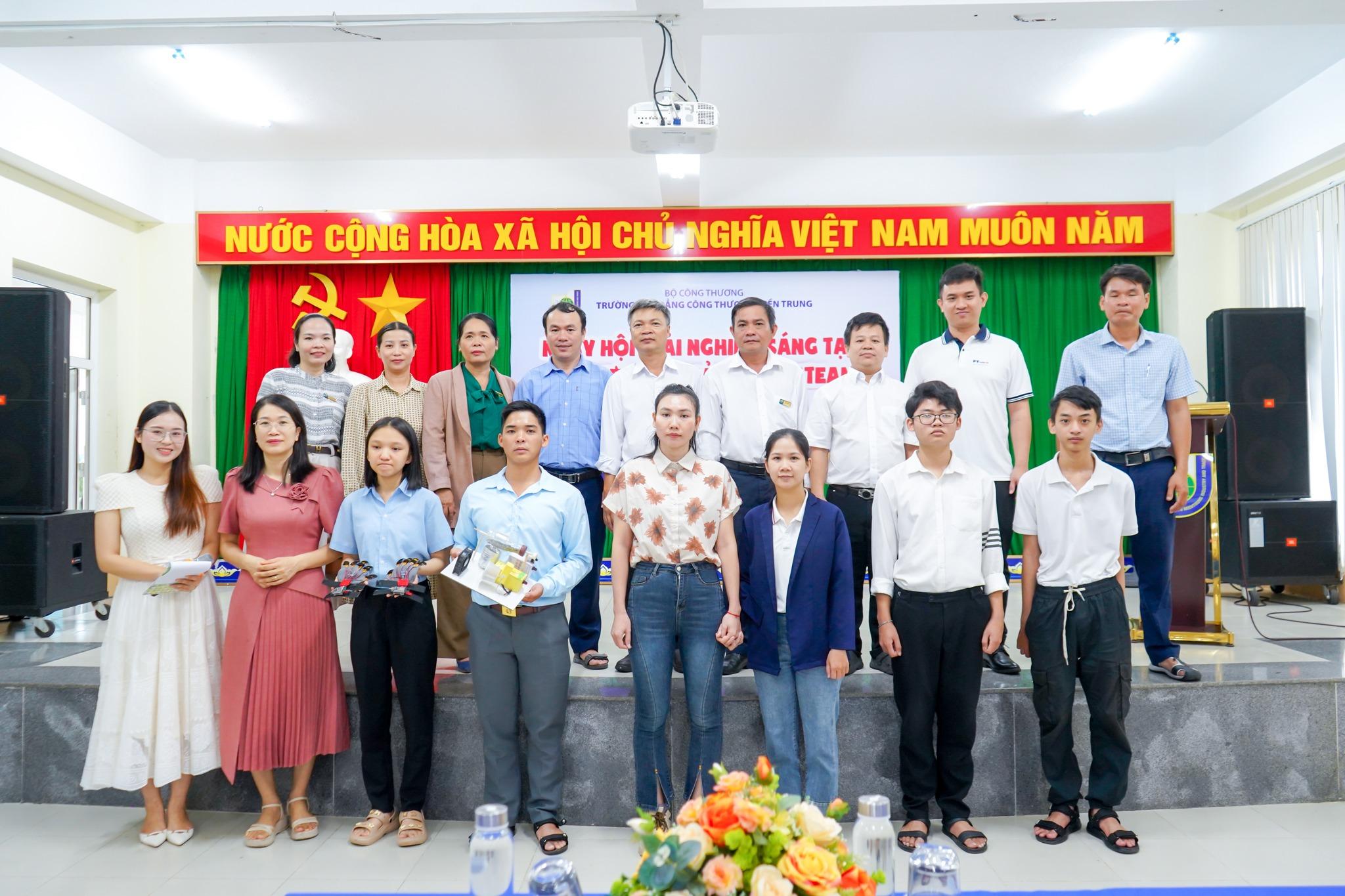 Ban giám khảo chụp hình lưu niệm cùng với các bạn học sinh đã có sản phẩm đạt giải trong hội thi