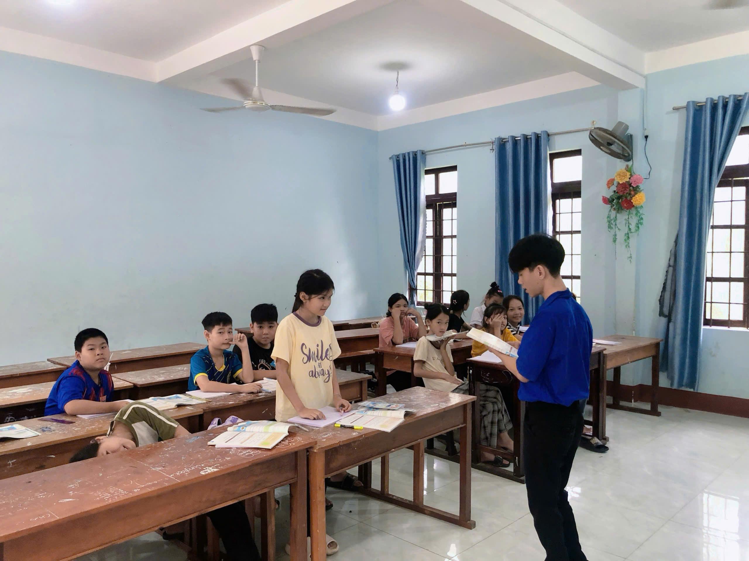 Sinh viên Phan Xuân Thìn tham gia ôn tập hè cho các em học sinh tại huyện miền núi Đồng Xuân tại chiến dịch mùa hè xanh năm 2024