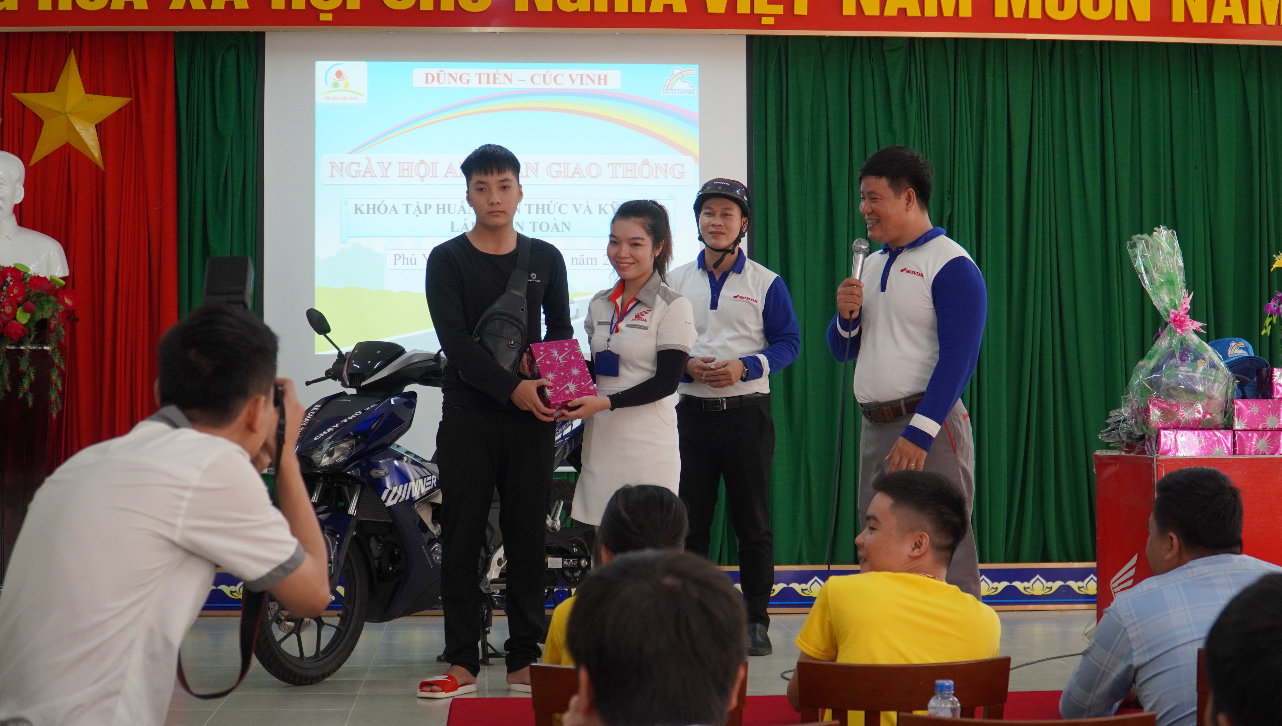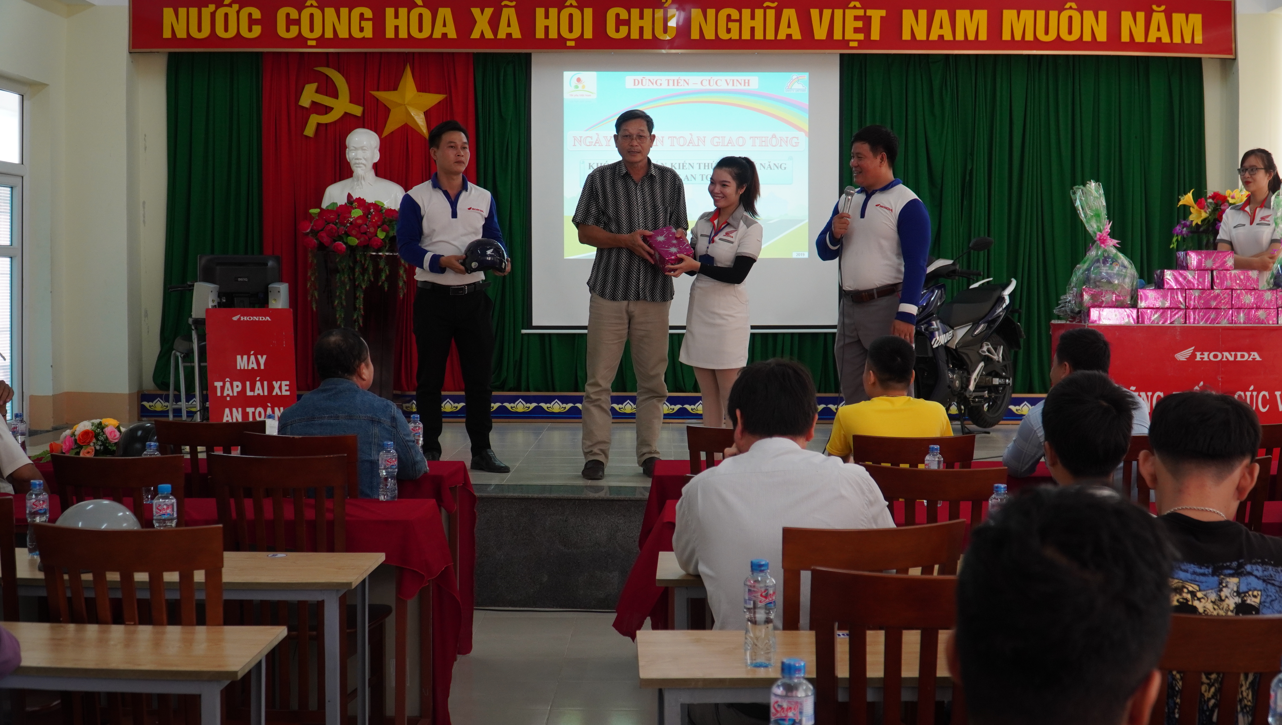 Hơn 500 học sinh sinh viên nhà trường tham gia chương trình đã được tập huấn các kỹ năng về lý thuyết và thực hành khi điều khiển xe máy, mô tô 2 bánh, và nhận được các phần quà hấp dẫn. Đồng thời tại ngày hội, Công ty TNHH Thương mại Dũng Tiến đã thay nhớt miễn phí cho hơn 500 xe máy.