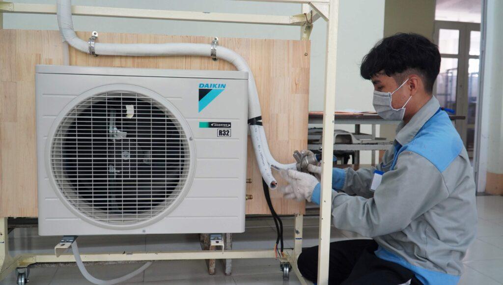 HSSV Ngành Kỹ thuật máy lạnh và điều hòa không khí của MITC tham gia cuộc thi kỹ năng nghề cấp tỉnh trên chính thiết bị của Nhà trường