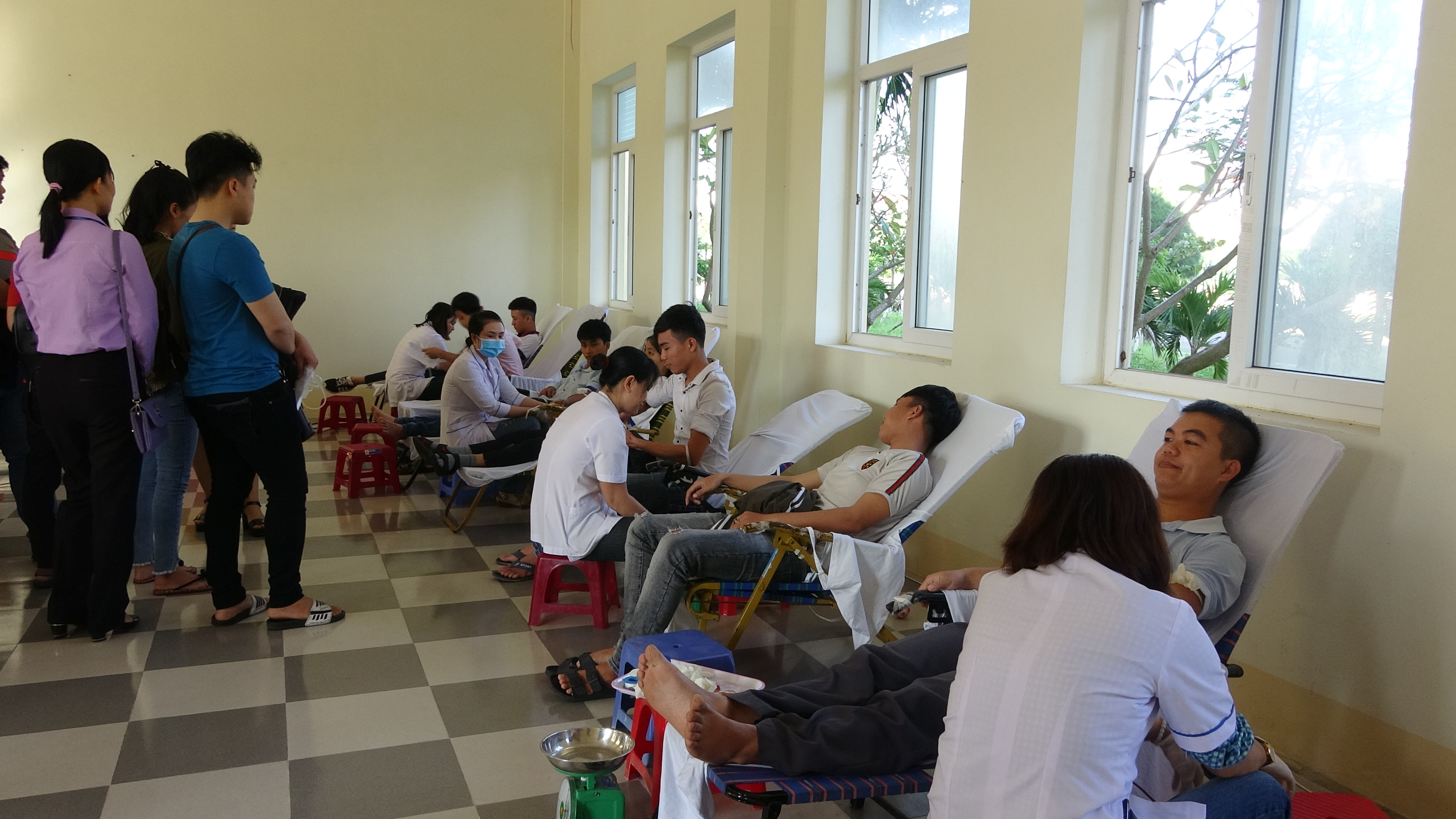 Các bạn HSSV trong Trường tham gia chương trình hiến máu tình nguyên năm học 2018 – 2019
