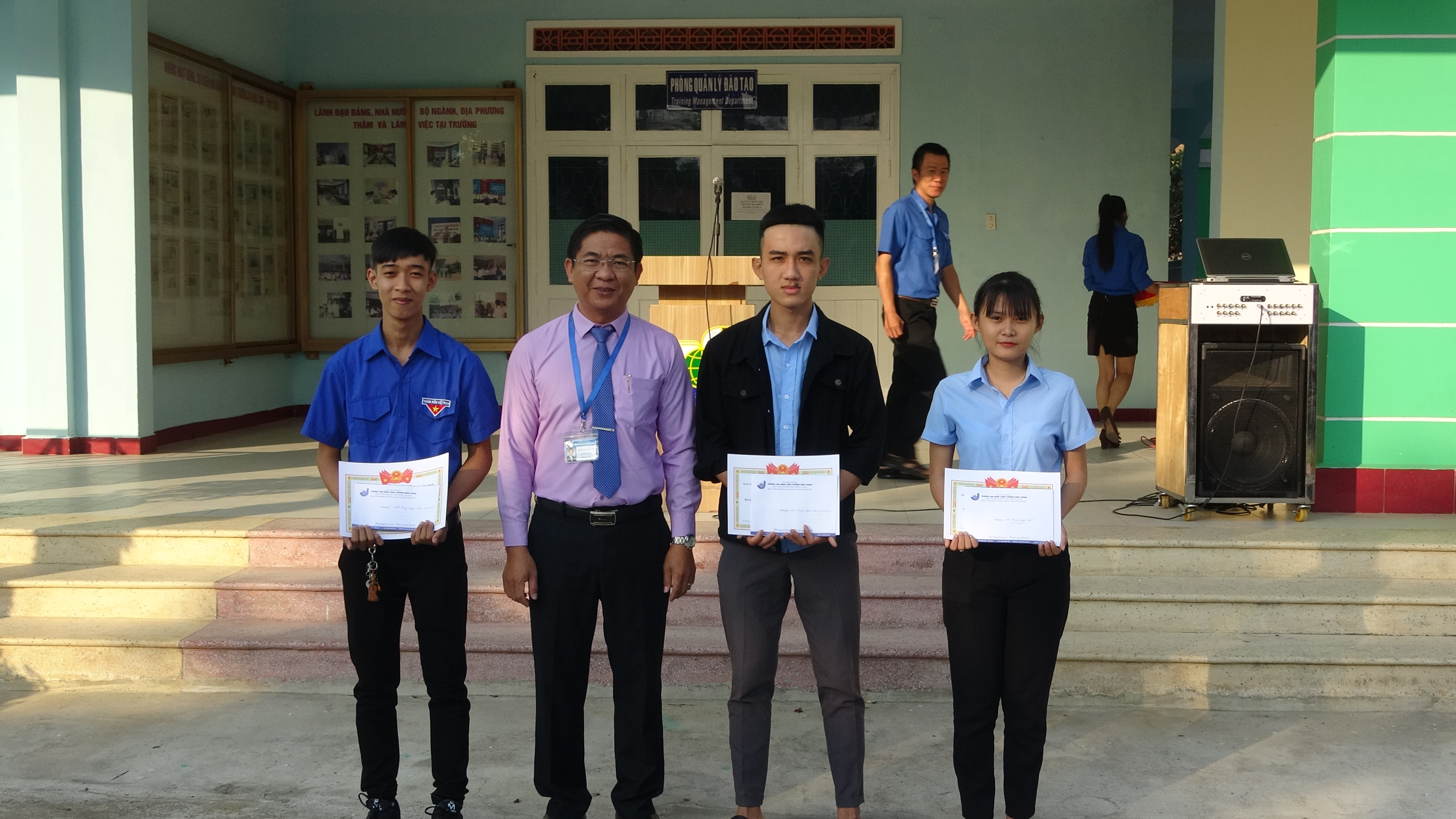 Đến dự buổi lễ có TS. Trần Kim Quyên – Bí thư Đảng ủy, Hiệu trưởng nhà trường; lãnh đạo các phòng, khoa; BCH Đoàn Thanh niên, Hội Sinh viên và hơn 100 cán bộ Đoàn đại diện cho các Liên chi đoàn, Chi đoàn trong toàn trường.