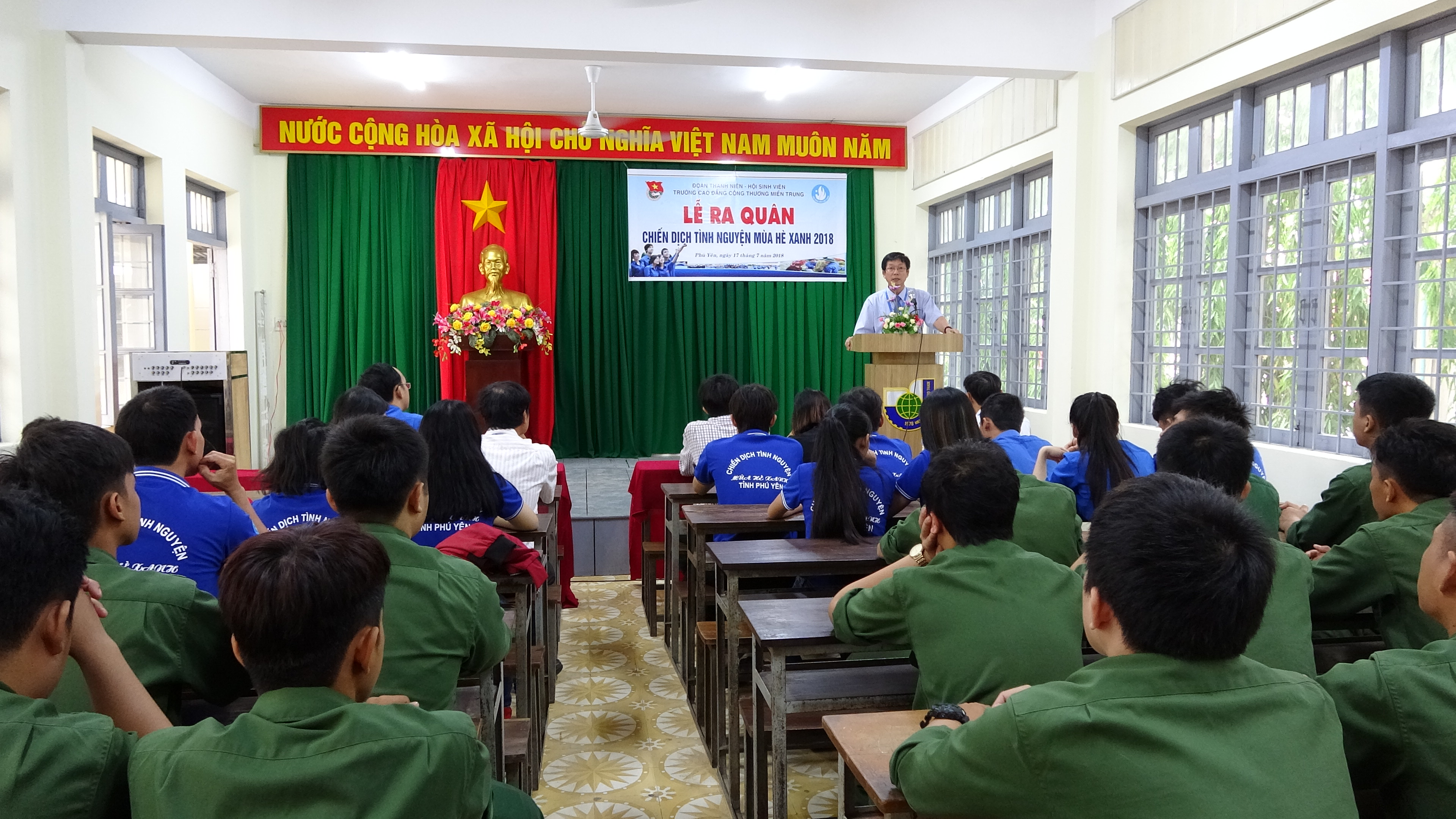 Sáng ngày 17/7/2018, tại Hội trường 101A2, cơ sở 1 trường Cao đẳng Công Thương miền Trung đã diễn ra lễ ra quân chiến dịch tình nguyện Mùa hè xanh 2018 với sự tham gia của 25 chiến sĩ là sinh viên nhiều khoa ngành khác nhau.