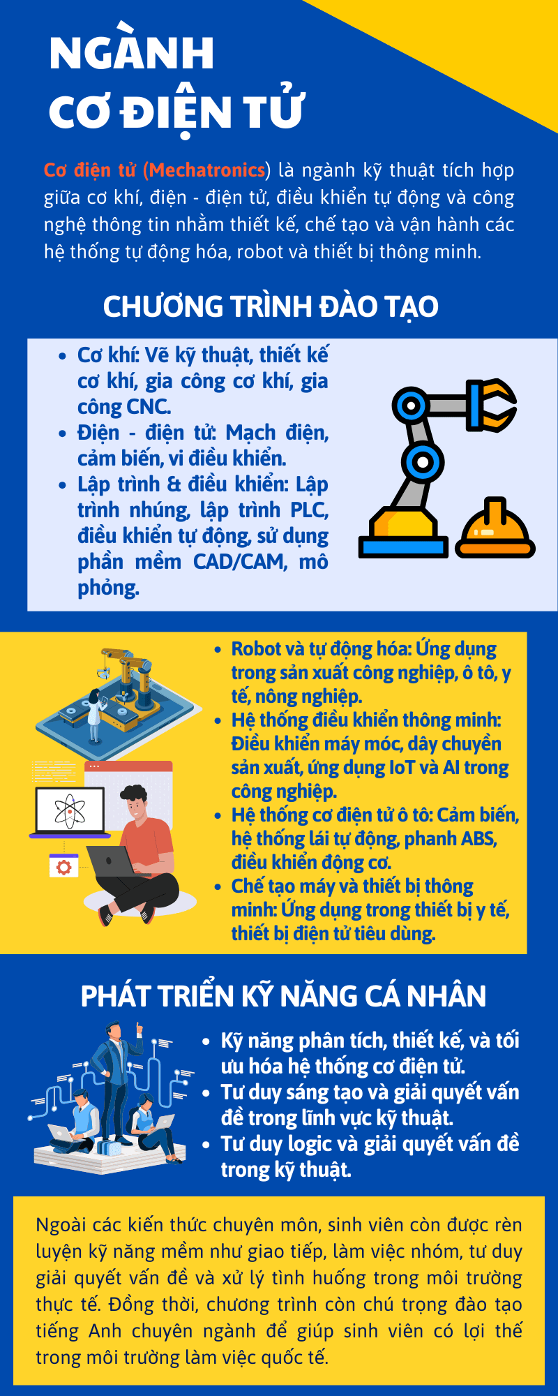 – Vận hành, bảo dưỡng, sửa chữa thiết bị cơ điện tử trên các dây chuyền sản xuất công nghiệp.
