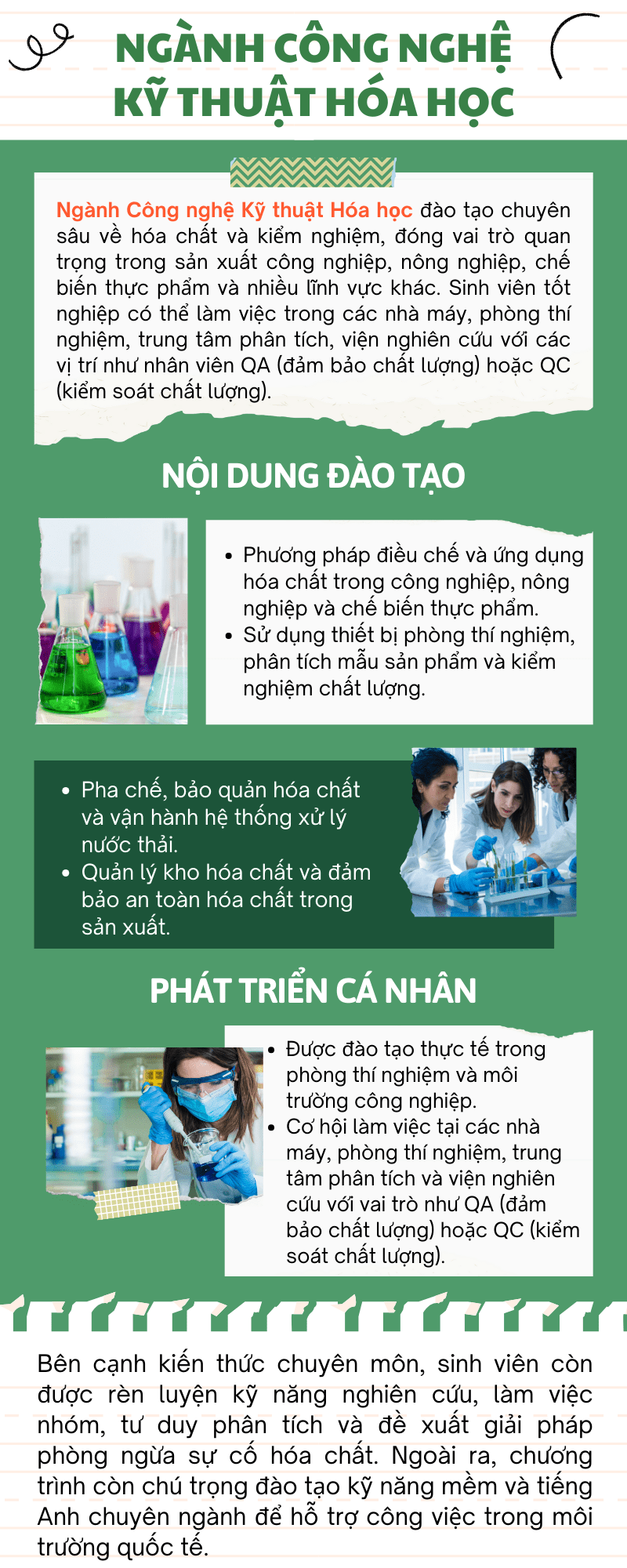 – Ngoài ra, nghề này có thể làm việc ở phòng thí nghiệm của các cơ quan quản lý nhà nước, các trường học và viện nghiên cứu; các công ty/doanh nghiệp kinh doanh và tư vấn kỹ thuật hóa chất, dụng cụ và thiết bị hóa học.