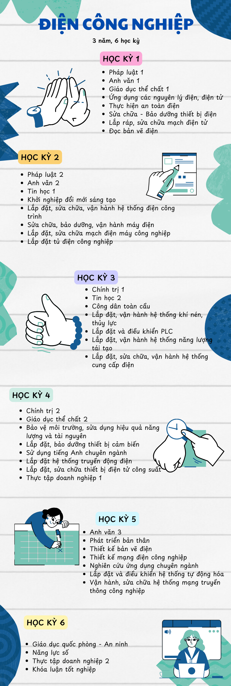 3 năm, 6 học kỳ liên tục