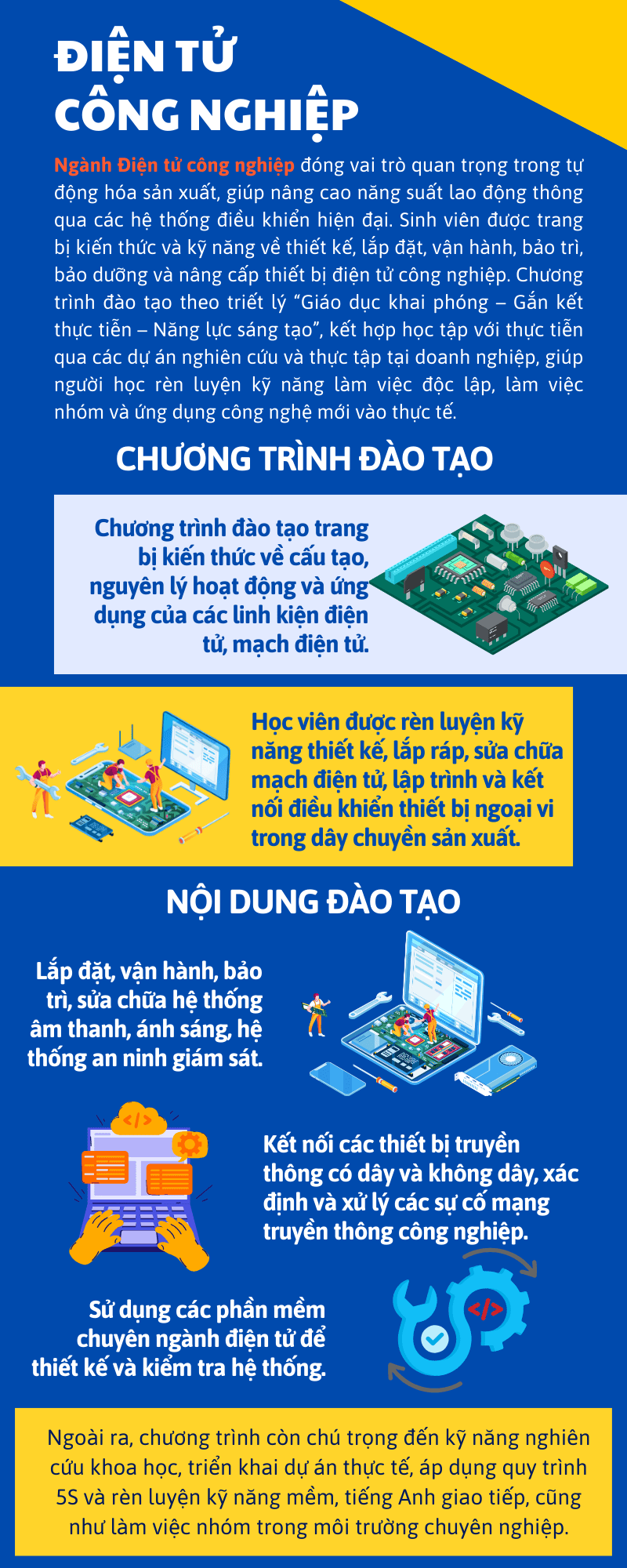 – Lắp đặt, bảo dưỡng thiết bị điện, điện tử trong công nghiệp và dân dụng;