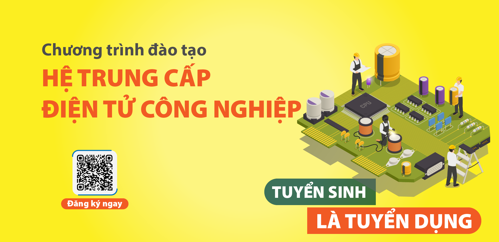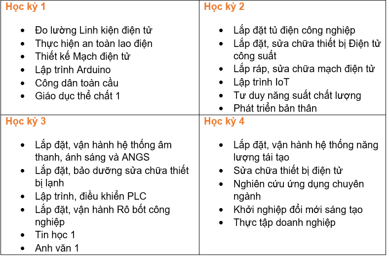 Chuyên ngành Điện tử công nghiệp trang bị cho người học những kỹ năng, kiến thức và công nghệ mới nhất trong lĩnh vực điện tử. Bạn sẽ được học tập trong một môi trường chuyên nghiệp, năng động và giàu tính thực tiễn. Với triết lý đào tạo “Giáo dục khai phóng – Gắn kết thực tiễn – Năng lực sáng tạo”sinh viên sẽ được tham gia nghiên cứu thực hiện các mô hình dự án khởi nghiệp và các học phần thực tập tại doanh nghiệp chiếm hơn 30% thời lượng chương trình đào tạo.