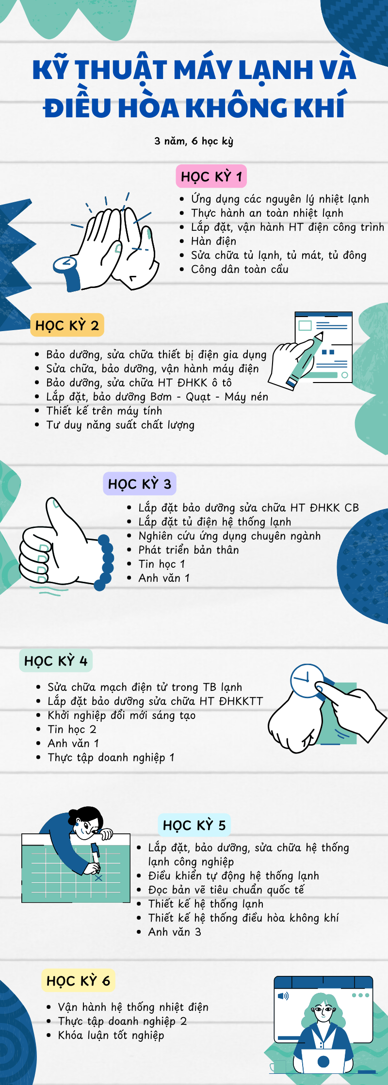 3 năm, 6 học kỳ liên tục