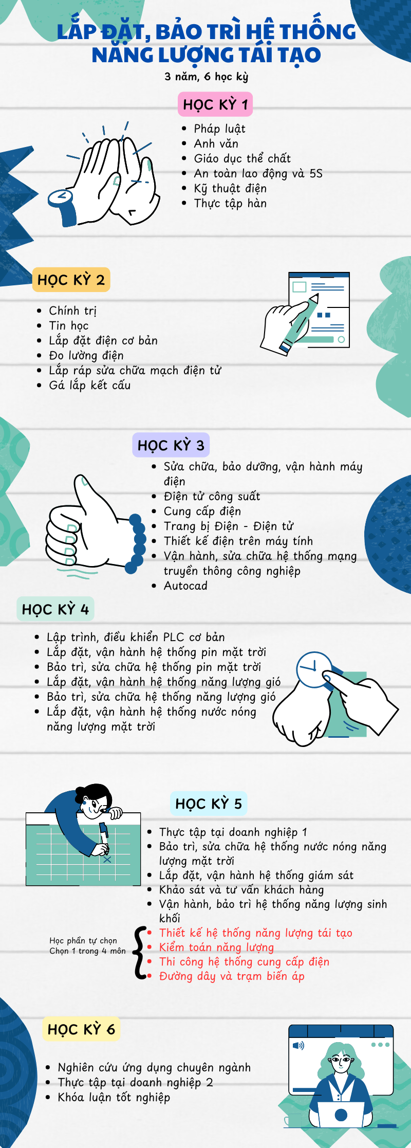 3 năm, 6 học kỳ liên tục