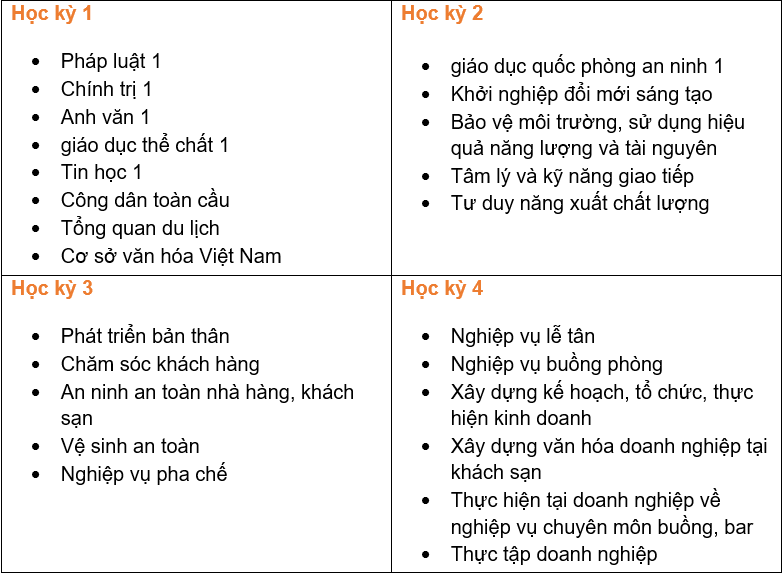 Hiện nay Ngành du lịch Việt Nam đang bùng nổ, kéo theo nhu cầu cao về nhân lực chất lượng cao trong lĩnh vực khách sạn. Theo Tổng cục Du lịch, Việt Nam cần tới hơn 1 triệu lao động trong ngành du lịch vào năm 2025.Quản Trị Khách Sạn là những kiến thức và kỹ năng cơ bản và cần thiết mà mỗi cá nhân làm việc trong lĩnh vực này phải nắm rõ và thực hiện chuẩn xác. Việc trang bị tốt nghiệp vụ chuyên môn nhằm đem đến sự hài lòng cho khách hàng, đồng thời đem lại doanh thu cho Khách sạn. Bạn sẽ được học tập trong một môi trường chuyên nghiệp, năng động và có giá trị tính thực tiễn cao. Với triết lý đào tạo “Giáo dục khai phóng – Gắn kết thực tiễn – Năng lực sáng tạo”, kết hợp phương pháp học đi đôi với hành sinh viên sẽ được trải nghiệm với những hoạt động, trải nghiệm thực tế cùng với đội ngũ giảng viên dày dặn kinh nghiệm và tràn đầy nhiệt huyết.