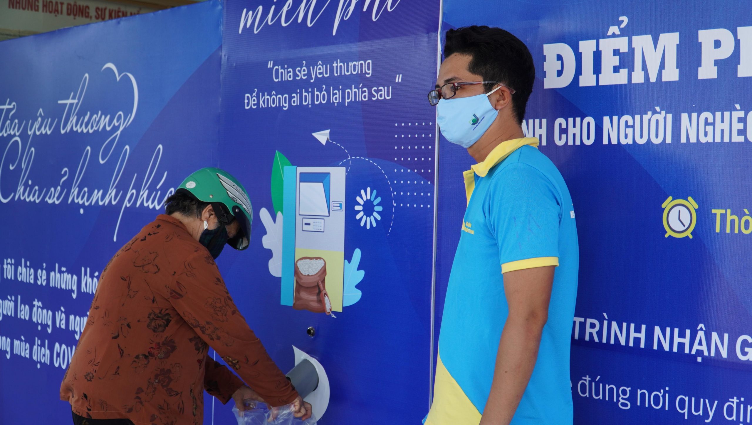 Người dân nhận gạo miễn phí tại máy ATM gạo