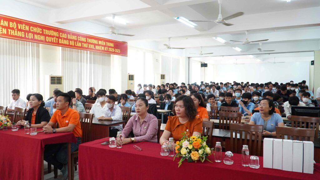Sáng ngày 15/09 tại hội trường B2 CS2, trường Cao đẳng Công Thương miền Trung phối hợp với Công ty Cổ phần Viễn Thông FPT – FPT Telecom tổ chức chương trình FPT Telecom Career Booming: “Tân Sinh viên – Hành trình xây tương lai”. Chương trình nhận được sự quan tâm, hưởng ứng nhiệt tình của hơn 200 bạn HSSV.