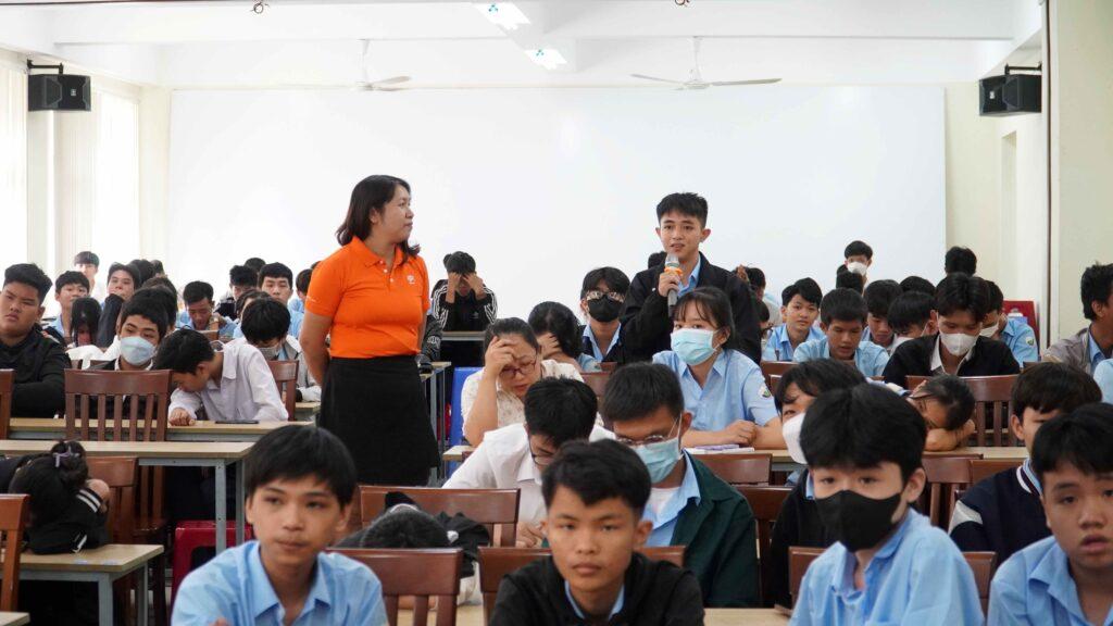 Các bạn tân HSSV MITC hào hứng đặt các câu hỏi liên quan nghề nghiệp mà các bạn đang theo học đến các diễn giả