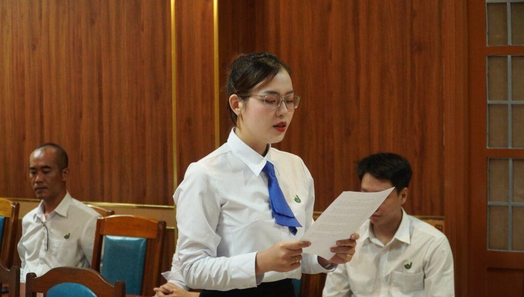Đồng chí Huỳnh Nguyễn Thùy Uyên – Chuyên viên TT Đào tạo theo nhu cầu xã hội, nhận Quyết định tại buổi Lễ