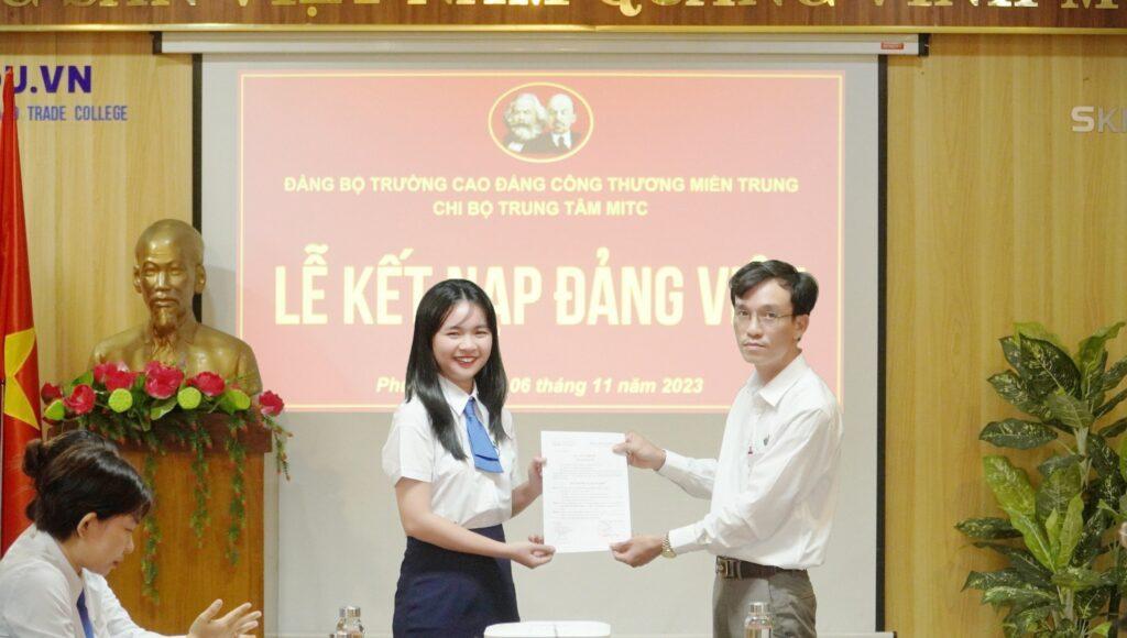 Đồng chí Lê Thị Thanh Trúc – Giảng viên TT Tuyển sinh và Quan hệ doanh nghiệp, nhận Quyết định tại buổi Lễ