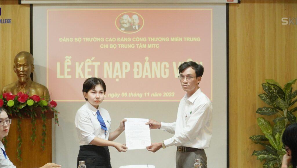 Tại buổi Lễ, đồng chí Trần Kim Quyên – Bí thư Đảng ủy, Hiệu trưởng Nhà trường chúc mừng 03 đồng chí đảng viên mới, ghi nhận những cố gắng trong suốt thời gian qua của các đồng chí, mong muốn các đồng chí tiếp tục phát huy vai trò trách nhiệm trong việc tu dưỡng, rèn luyện, phấn đấu, học tập, nâng cao nhận thức chính trị và năng lực chuyên môn, góp phần xây dựng Chi bộ trong sạch, vững mạnh và thực hiện tốt nhiệm vụ của người đảng viên, đặc biệt là thực hiện tốt quy định về những điều Đảng viên không được làm. Đồng thời nhấn mạnh công tác phát triển đảng viên là nhiệm vụ thường xuyên và có ý nghĩa rất quan trọng của Chi bộ, góp phần phát triển, nâng cao năng lực lãnh đạo và sức chiến đấu của tổ chức cơ sở Đảng nói chung và của cá nhân đảng viên nói riêng. Đồng chí đề nghị các đảng viên Chi bộ tiếp tục phát huy tinh thần đoàn kết, giữ vững bản lĩnh chính trị, trách nhiệm, chủ động, sáng tạo, hoàn thành xuất sắc nhiệm vụ được giao.