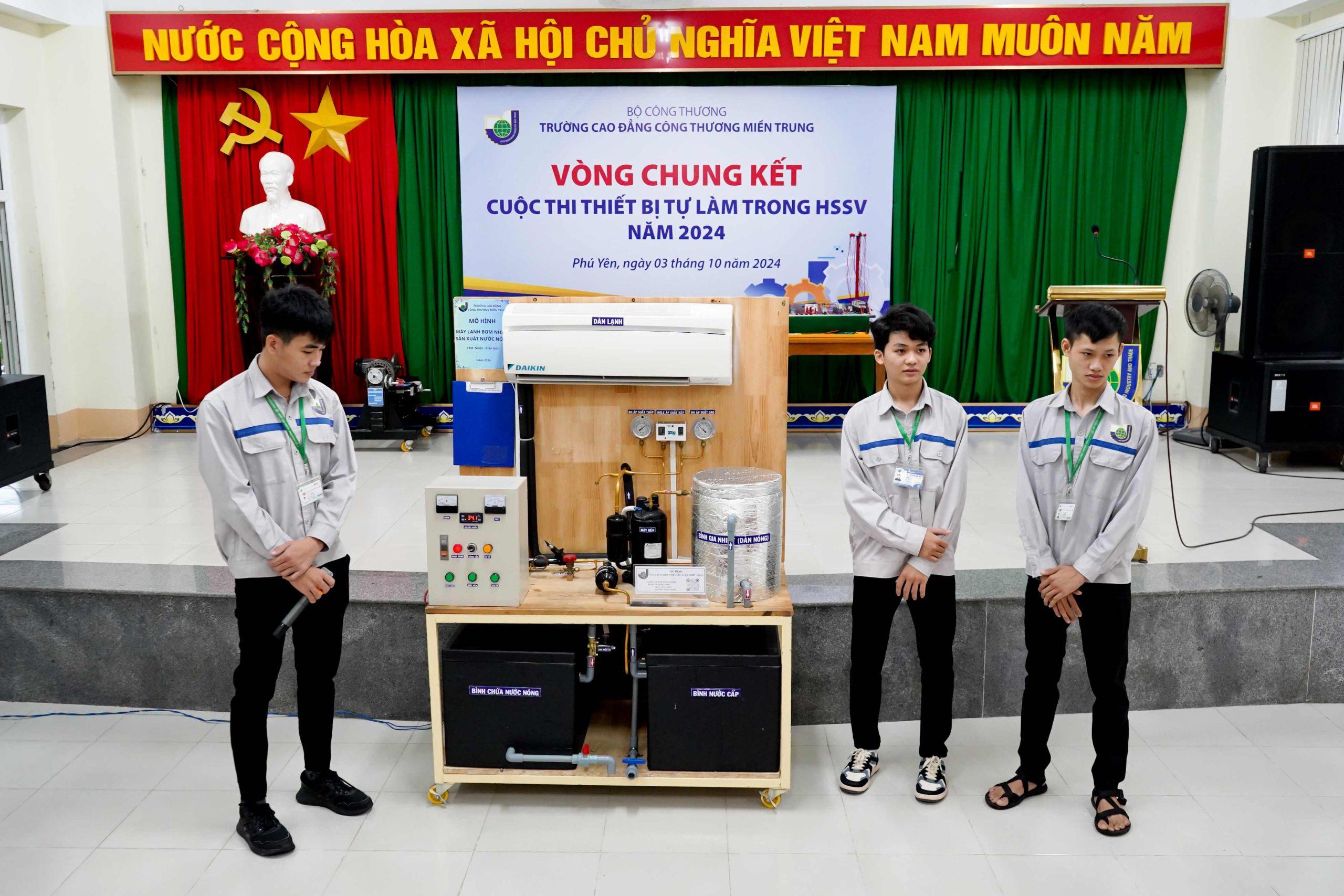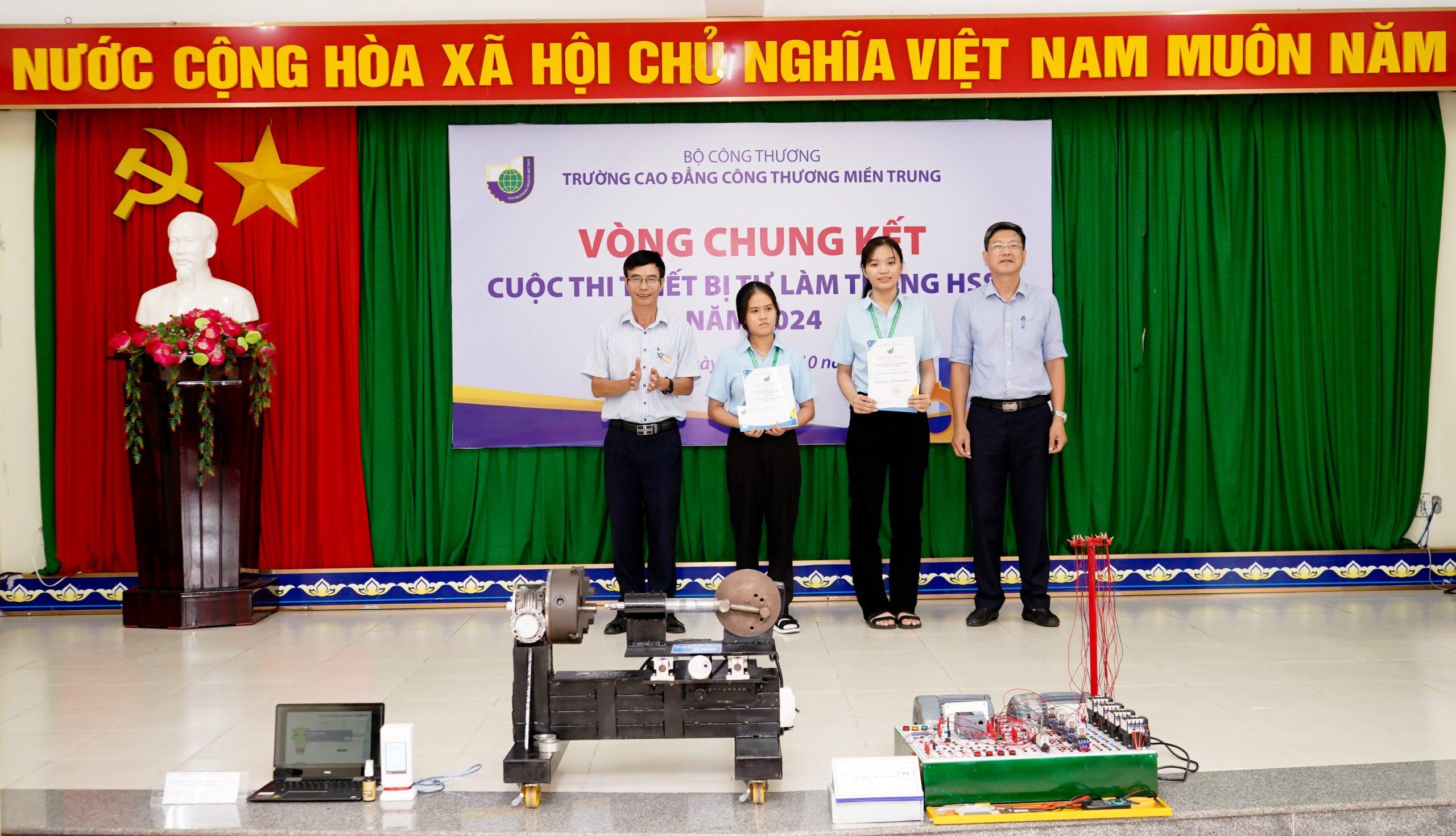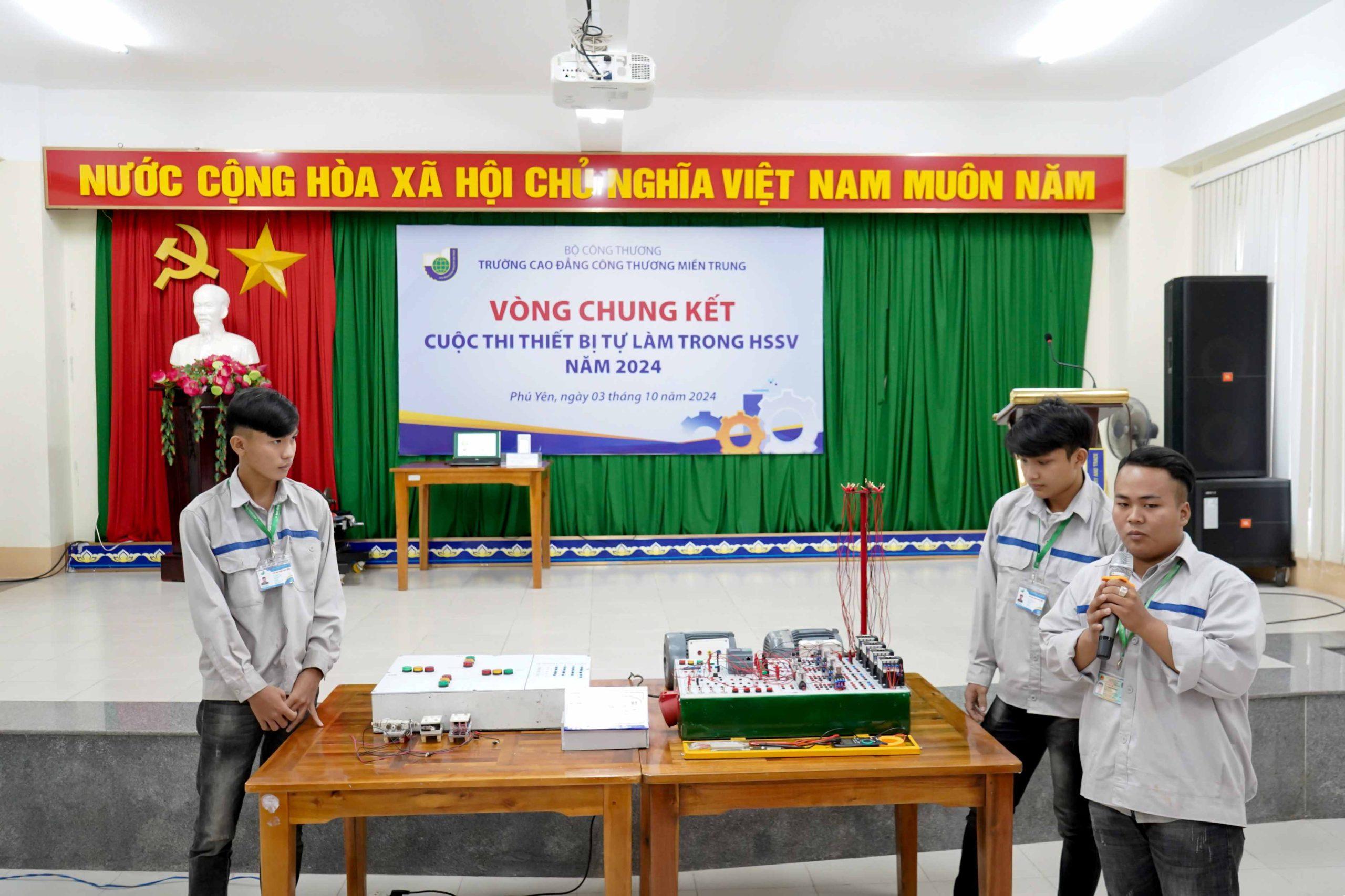 Sáng ngày 4/10/2024, Trường Cao đẳng Công Thương miền Trung đã tổ chức chung kết cuộc thi “Thiết bị tự làm trong HSSV” năm 2024, đánh dấu sự kiện quan trọng trong chuỗi hoạt động hưởng ứng Ngày Kỹ năng lao động Việt Nam. Cuộc thi là dịp để học sinh, sinh viên từ các khoa thể hiện sự sáng tạo và khả năng ứng dụng thực tiễn, góp phần nâng cao kỹ năng nghề nghiệp, đáp ứng yêu cầu của thời đại hội nhập.