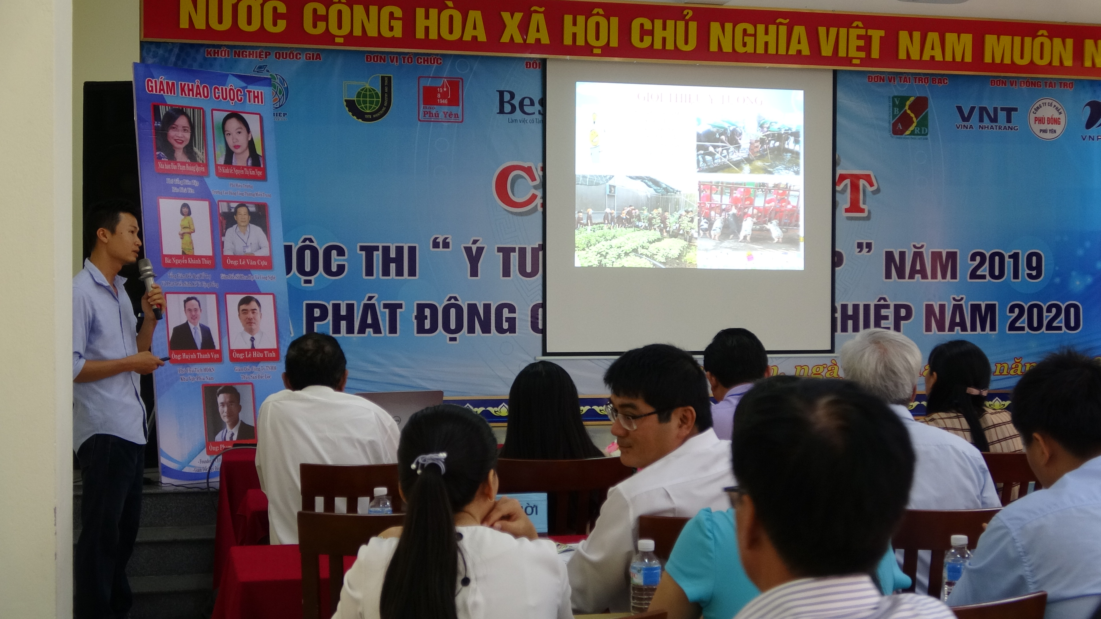 Tham dự, có Ông Lê Văn Cựu – Giám đốc Sở Khoa học Công nghệ tỉnh Phú Yên; Ông Huỳnh Thanh Vạn – Phó Chủ tịch Hội đồng Khởi nghiệp Quốc gia khu vực phía Nam; Ông Ngô Đa Thọ – Chủ tịch Hội Doanh nghiệp tỉnh Phú Yên; Bà Nguyễn Khánh Thủy – Giám đốc Quỹ phát triển và sinh kế vì cộng đồng, cùng các đơn vị tài trợ cuộc thi và đại diện các doanh nghiệp, nhà đầu tư; Về phía đơn vị tổ chức, có Bà Đào Phạm Hoàng Quyên – Phó Tổng biên tập Báo Phú Yên; TS. Trần Kim Quyên – Hiệu trưởng Trường Cao đẳng Công Thương miền Trung; các thầy cô giáo, 11 tác giả dự thi lọt vào Chung kết và hơn 200 học sinh sinh viên tham gia cổ vũ cho cuộc thi.