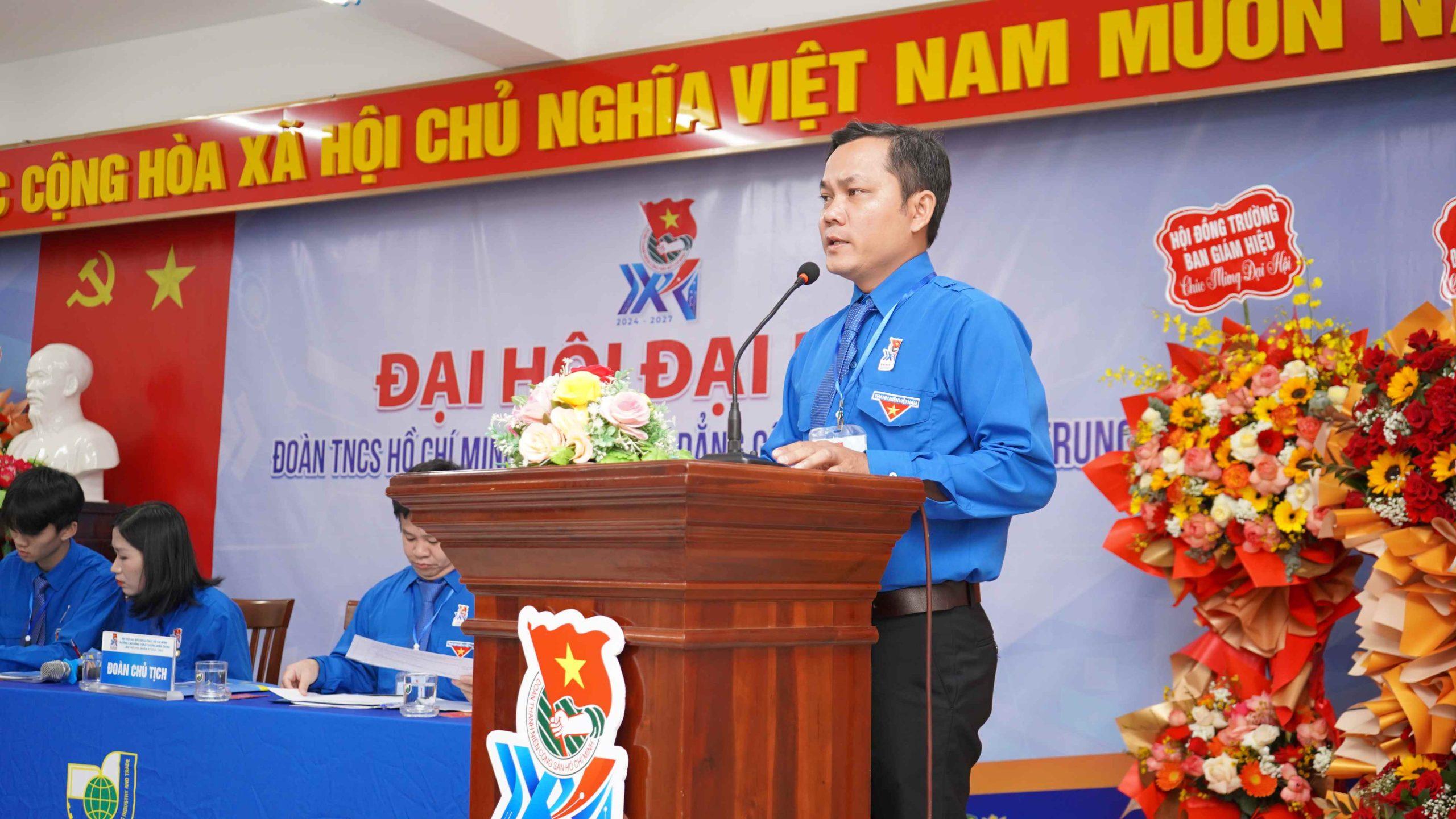 Đồng chí Nguyễn Tấn Khả – Bí thư Đoàn Thanh niên Trường, phát biểu tại Đại hội