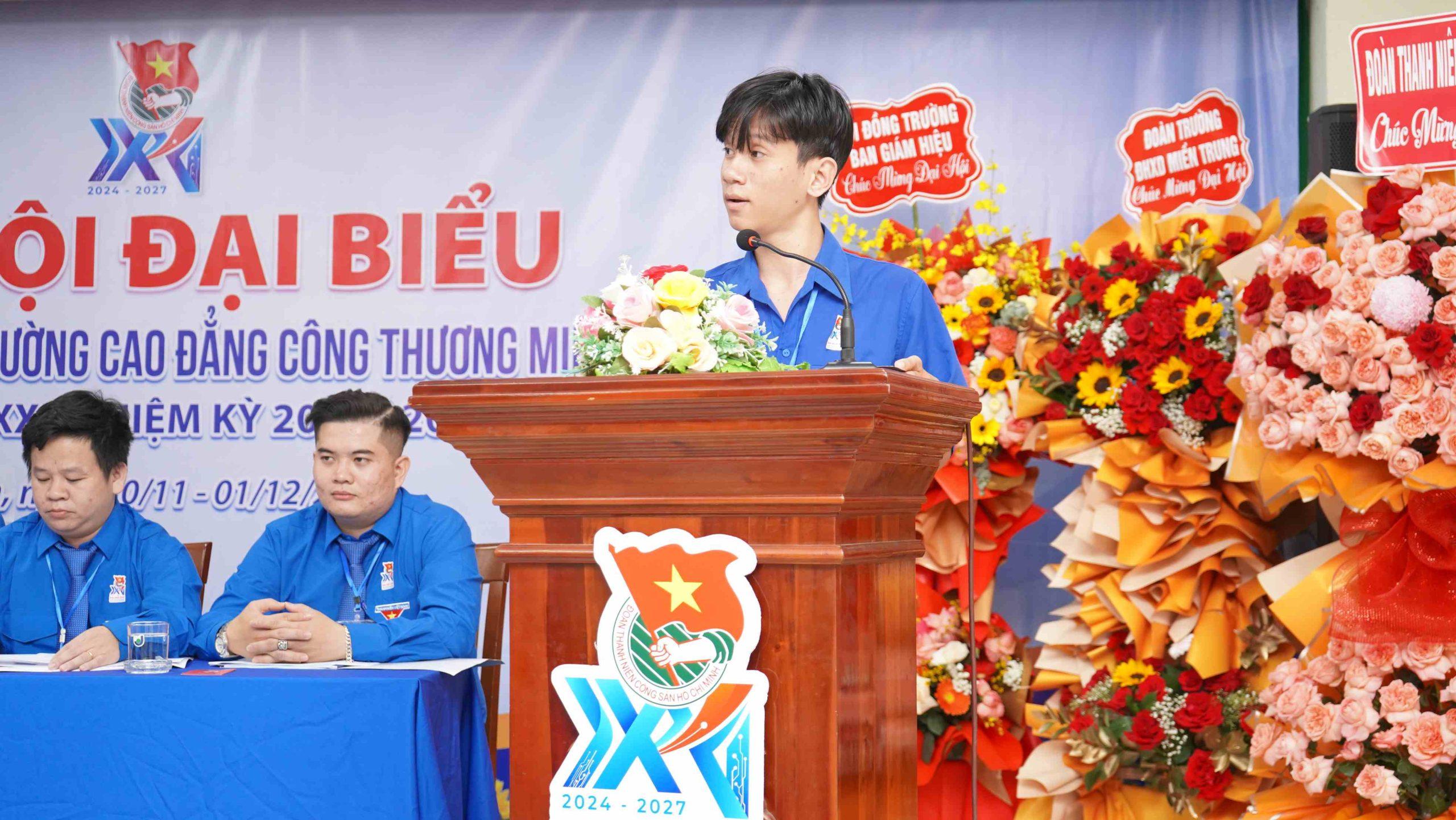 Đồng chí Nguyễn Tấn Khả – Bí thư Đoàn thanh niên Trường Cao đẳng Công Thương miền Trung, lần thứ XXXI, nhiệm kỳ 2024 – 2027, thay mặt Ban chấp hành Đoàn Thanh niên Trường phát biểu nhận nhiệm vụ tại Đại hội
