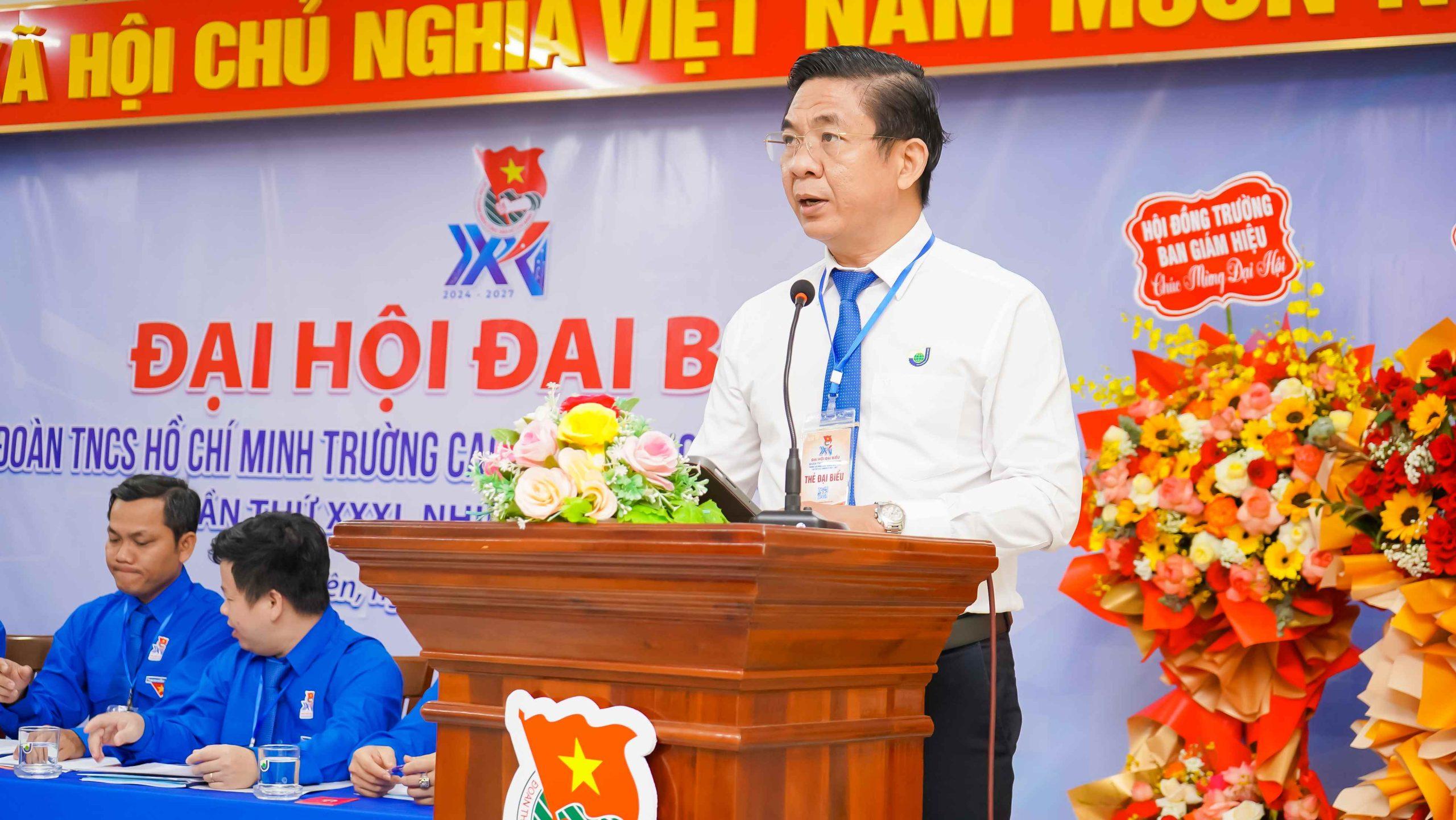 Cũng trong Đại hội, TS. Trần Kim Quyên, Bí thư Đảng ủy, Hiệu trưởng Nhà trường, đã thay mặt Ban Chấp hành Đảng bộ gửi lời chào mừng và chúc mừng Đại hội. Đồng chí chia sẻ những thành tựu đáng ghi nhận của tổ chức Đoàn và phong trào thanh niên trong nhiệm kỳ vừa qua, như phong trào sinh viên tình nguyện, phong trào Tuổi trẻ sáng tạo, các chương trình đồng hành với sinh viên. Đồng chí Trần Kim Quyên nhấn mạnh trong thời gian tới tổ chức Đoàn cần quan tâm đến hoạt động chăm sóc người học, đổi mới sáng tạo, nghiên cứu khoa học.