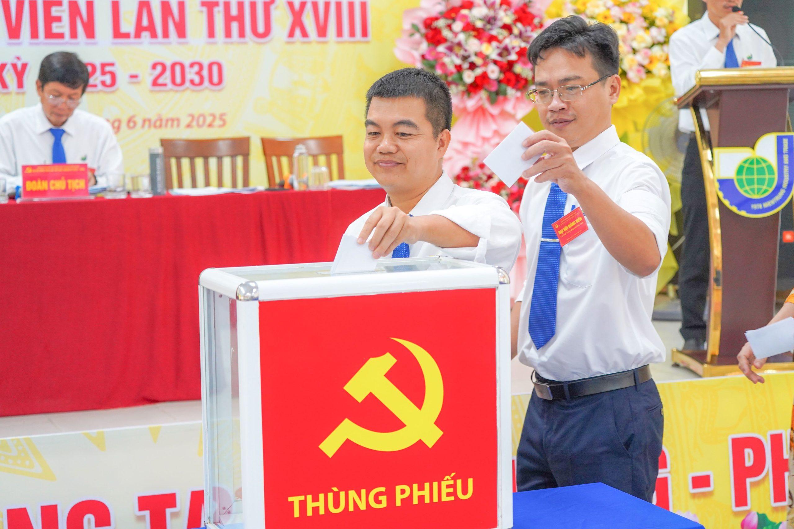 Đại hội cũng đã thống nhất thông qua dự thảo Nghị quyết Đại hội Đảng viên Trường lần thứ XVIII nhiệm kỳ 2025 – 2030 do Đoàn thư ký trình bày; giao nhiệm vụ cho Ban Chấp hành khóa mới căn cứ Nghị quyết Đại hội, trên cơ sở quán triệt sâu sắc nghị quyết Đại hội Đại biểu lần thứ XIV của Đảng; xây dựng các nghị quyết, chương trình, kế hoạch công tác để chỉ đạo thực hiện thắng lợi nghị quyết Đại hội Đảng viên Trường lần thứ XVIII, nhiệm kỳ 2025 – 2030.