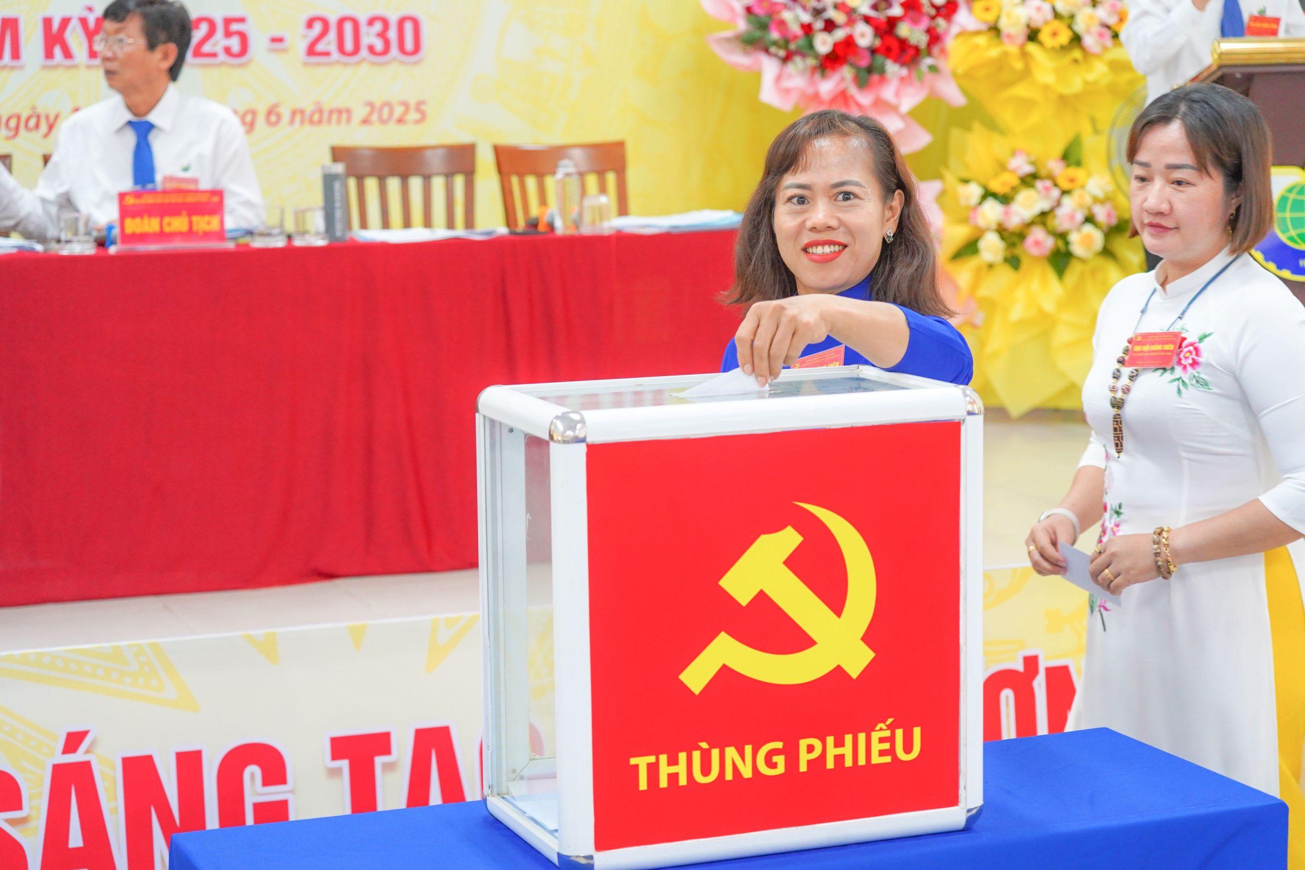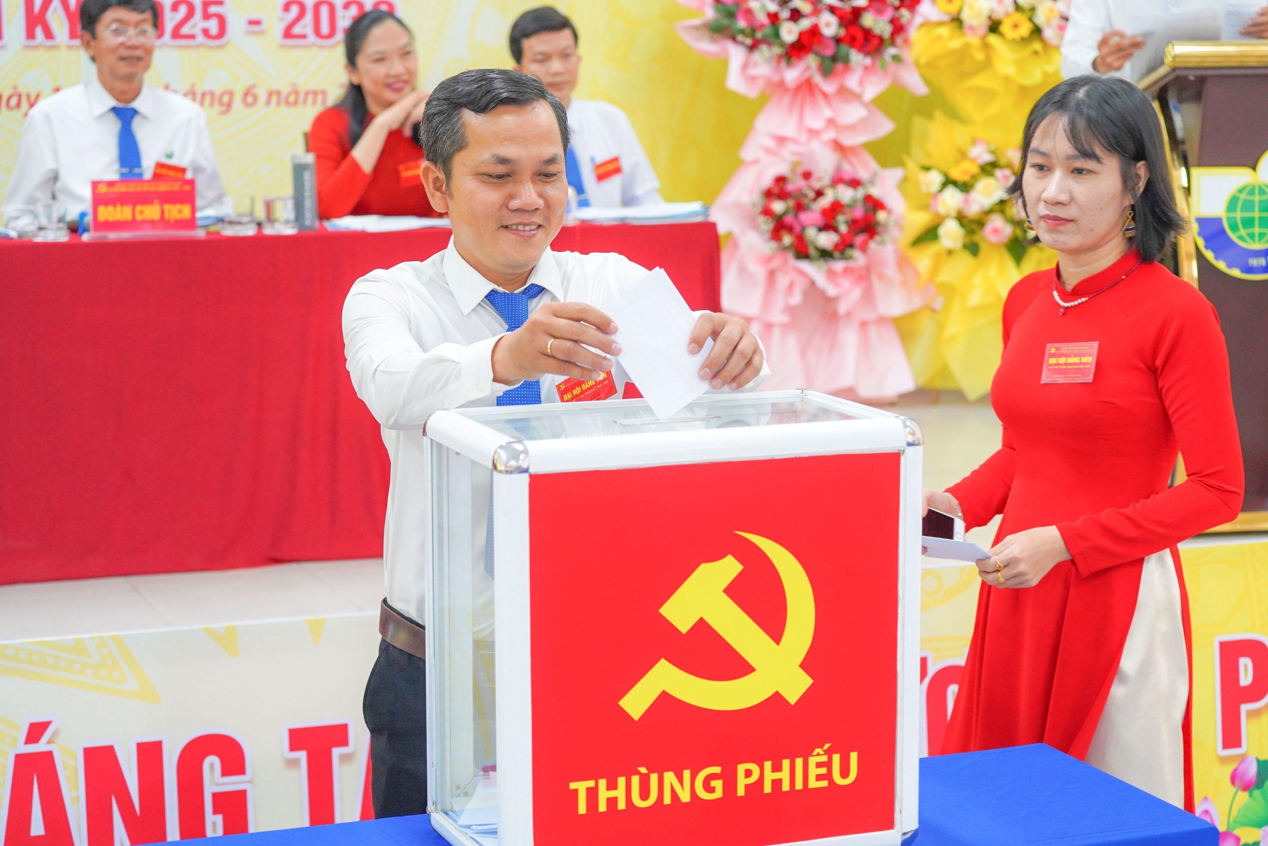 Các đại biểu tham gia bỏ phiếu bầu Ban chấp hành Đảng bộ trường Cao đẳng Công Thương miền Trung, nhiệm kỳ 2025 – 2030